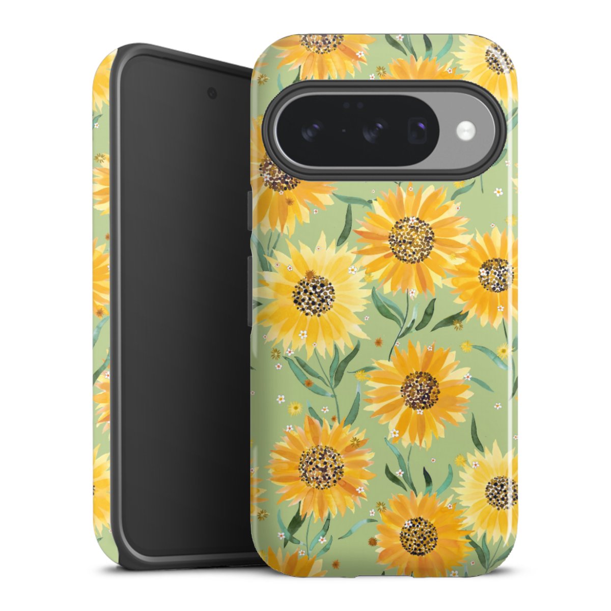 Bei dieser Handyhülle nutzen wird den besonders langlebigen Sublimationsdruck. Dieses raffinierte Druckverfahren sticht durch sein hochwertiges, gestochen scharfes Druckbild in brillanten Farben hervor. Der Druckbereich umfasst die ganze Hartschale inklusive der Ecken und Kanten, lediglich der Silikon-Einleger bleibt einfarbig schwarz. Wähle für Dein Design entweder eines unserer exklusiven Shop-Motive, oder werde kreativ und gestalte Dein Wunschdesign zum Beispiel mit Fotos und Overlays selbst.
