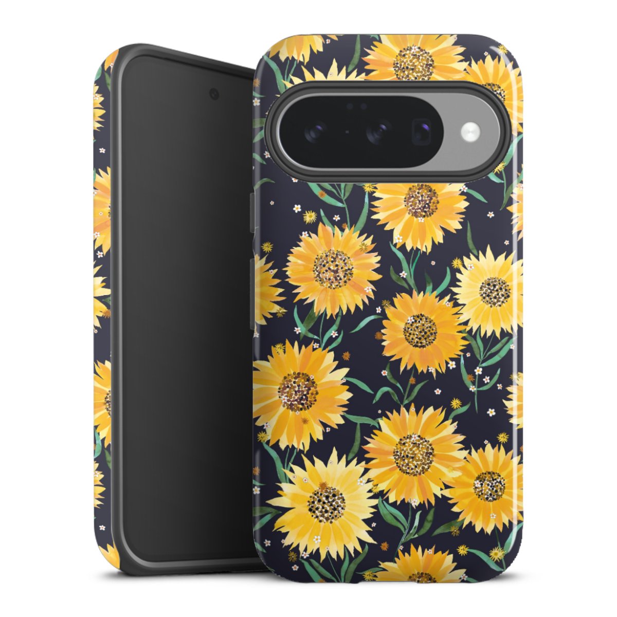 Bei dieser Handyhülle nutzen wird den besonders langlebigen Sublimationsdruck. Dieses raffinierte Druckverfahren sticht durch sein hochwertiges, gestochen scharfes Druckbild in brillanten Farben hervor. Der Druckbereich umfasst die ganze Hartschale inklusive der Ecken und Kanten, lediglich der Silikon-Einleger bleibt einfarbig schwarz. Wähle für Dein Design entweder eines unserer exklusiven Shop-Motive, oder werde kreativ und gestalte Dein Wunschdesign zum Beispiel mit Fotos und Overlays selbst.
