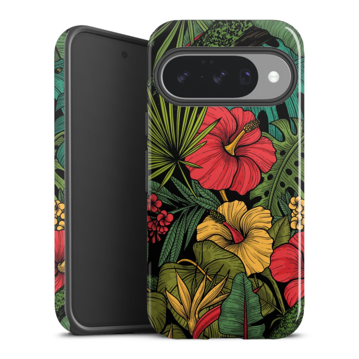 Bei dieser Handyhülle nutzen wird den besonders langlebigen Sublimationsdruck. Dieses raffinierte Druckverfahren sticht durch sein hochwertiges, gestochen scharfes Druckbild in brillanten Farben hervor. Der Druckbereich umfasst die ganze Hartschale inklusive der Ecken und Kanten, lediglich der Silikon-Einleger bleibt einfarbig schwarz. Wähle für Dein Design entweder eines unserer exklusiven Shop-Motive, oder werde kreativ und gestalte Dein Wunschdesign zum Beispiel mit Fotos und Overlays selbst.