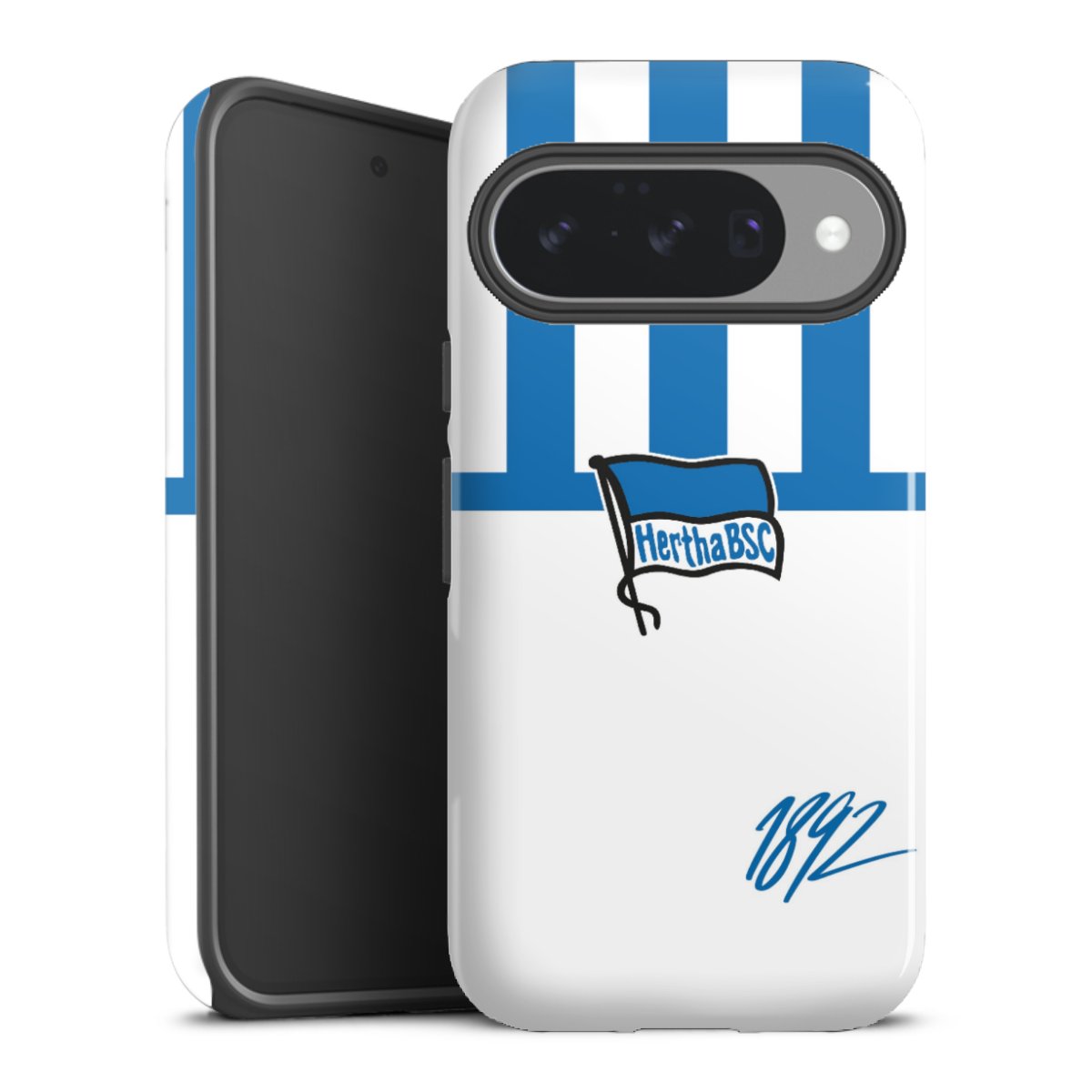 Jede Hertha-BSC-Handyhülle ist in den Vereinsfarben Blau und Weiß gehalten und bringt kreative Fußballmotive hervorragend zur Geltung. Dazu zählt selbstverständlich das Hertha-Logo, welches mal auf weißem und mal auf schwarzem Hintergrund abgebildet wird. Viele weitere begehrte und bewährte Hertha-Motive sorgen für eine große Auswahl im Fanartikelshop.