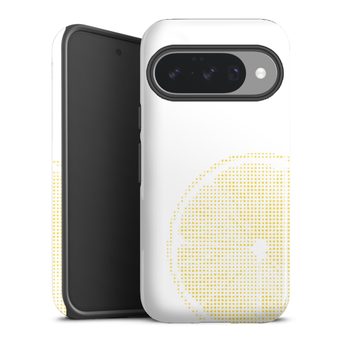 Bei dieser Handyhülle nutzen wird den besonders langlebigen Sublimationsdruck. Dieses raffinierte Druckverfahren sticht durch sein hochwertiges, gestochen scharfes Druckbild in brillanten Farben hervor. Der Druckbereich umfasst die ganze Hartschale inklusive der Ecken und Kanten, lediglich der Silikon-Einleger bleibt einfarbig schwarz. Wähle für Dein Design entweder eines unserer exklusiven Shop-Motive, oder werde kreativ und gestalte Dein Wunschdesign zum Beispiel mit Fotos und Overlays selbst.