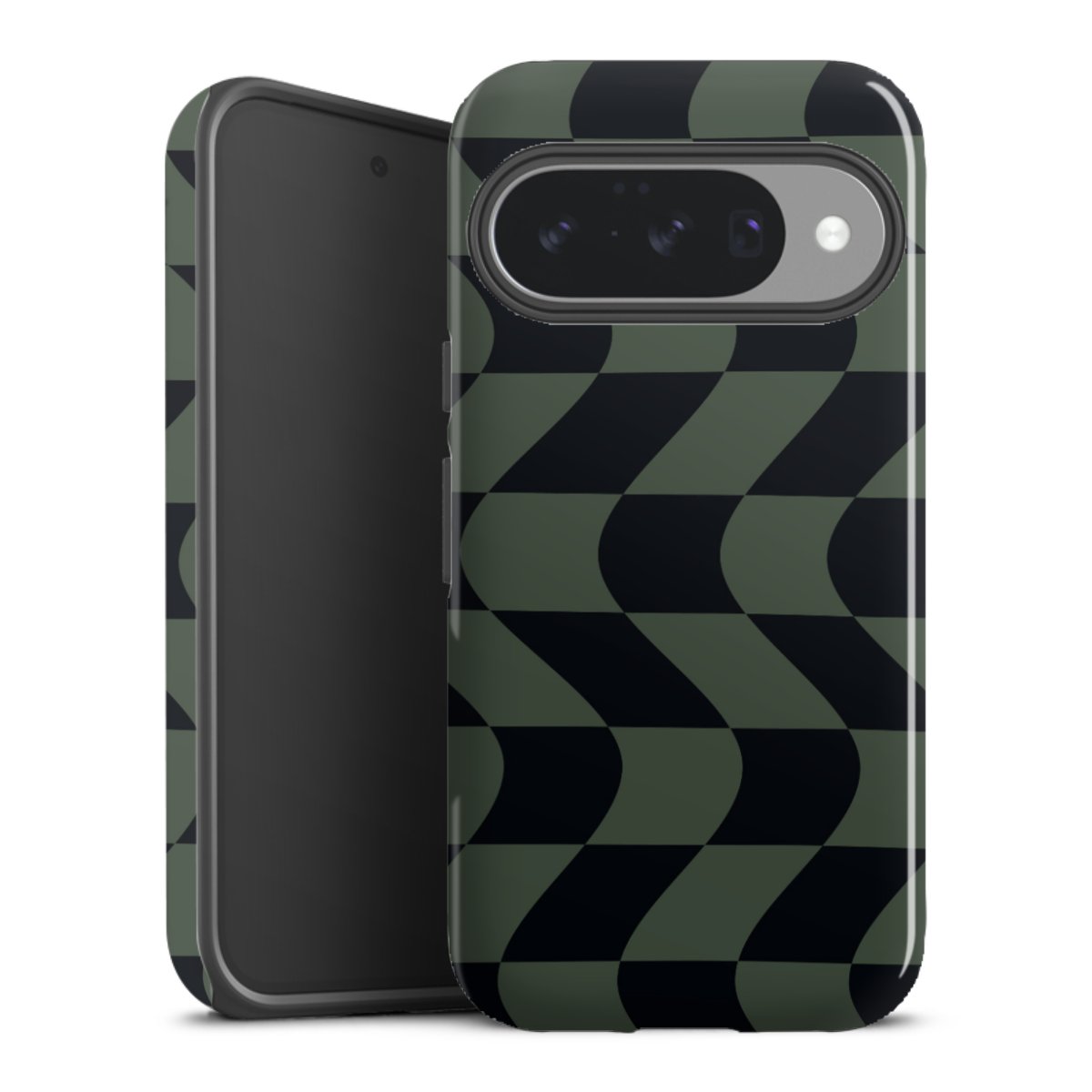 Bei dieser Handyhülle nutzen wird den besonders langlebigen Sublimationsdruck. Dieses raffinierte Druckverfahren sticht durch sein hochwertiges, gestochen scharfes Druckbild in brillanten Farben hervor. Der Druckbereich umfasst die ganze Hartschale inklusive der Ecken und Kanten, lediglich der Silikon-Einleger bleibt einfarbig schwarz. Wähle für Dein Design entweder eines unserer exklusiven Shop-Motive, oder werde kreativ und gestalte Dein Wunschdesign zum Beispiel mit Fotos und Overlays selbst.