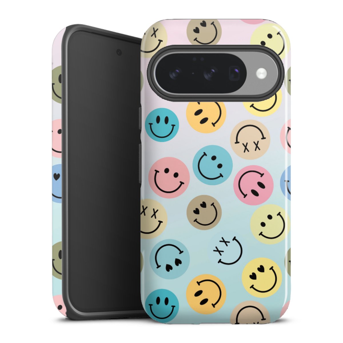 Bei dieser Handyhülle nutzen wird den besonders langlebigen Sublimationsdruck. Dieses raffinierte Druckverfahren sticht durch sein hochwertiges, gestochen scharfes Druckbild in brillanten Farben hervor. Der Druckbereich umfasst die ganze Hartschale inklusive der Ecken und Kanten, lediglich der Silikon-Einleger bleibt einfarbig schwarz. Wähle für Dein Design entweder eines unserer exklusiven Shop-Motive, oder werde kreativ und gestalte Dein Wunschdesign zum Beispiel mit Fotos und Overlays selbst.