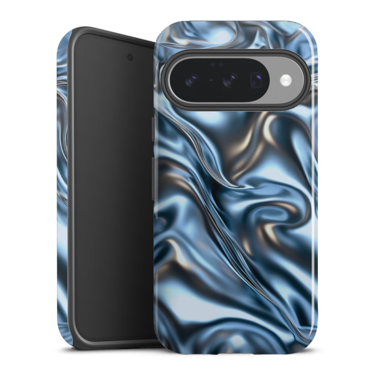 Unsere sicherste Schutzhülle vereint die Vorteile der Silikonhülle mit den Vorzügen des Premium Cases und besteht aus zwei Teilen: Innen federt der flexible Silikonkern aus robustem TPU (thermoplastisches Polyurethan) zuverlässig Stöße und Stürze ab, außen sorgt die widerstandsfähige und langlebige Hartschale aus Polycarbonat für zusätzliche Stabilität. Die Oberfläche der insgesamt 2,6 mm starken Hülle fühlt sich angenehm glatt an und macht das Tough Case zu einem echten Handschmeichler. Die Handyhülle ist in glänzend und matt erhältlich, der Silikoneinleger ist Schwarz.
