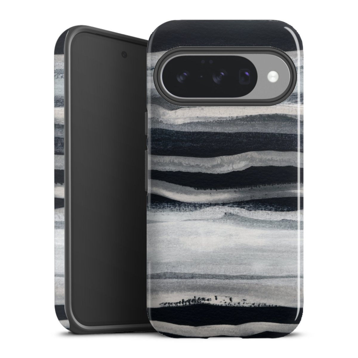 Unsere sicherste Schutzhülle vereint die Vorteile der Silikonhülle mit den Vorzügen des Premium Cases und besteht aus zwei Teilen: Innen federt der flexible Silikonkern aus robustem TPU (thermoplastisches Polyurethan) zuverlässig Stöße und Stürze ab, außen sorgt die widerstandsfähige und langlebige Hartschale aus Polycarbonat für zusätzliche Stabilität. Die Oberfläche der insgesamt 2,6 mm starken Hülle fühlt sich angenehm glatt an und macht das Tough Case zu einem echten Handschmeichler. Die Handyhülle ist in glänzend und matt erhältlich, der Silikoneinleger ist Schwarz.