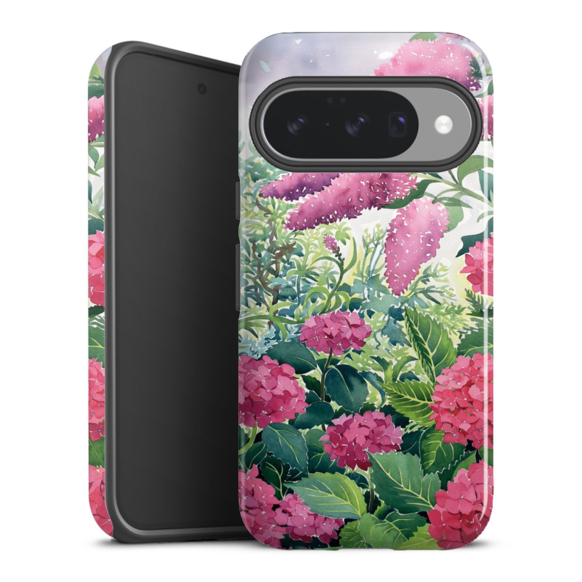 Bei dieser Handyhülle nutzen wird den besonders langlebigen Sublimationsdruck. Dieses raffinierte Druckverfahren sticht durch sein hochwertiges, gestochen scharfes Druckbild in brillanten Farben hervor. Der Druckbereich umfasst die ganze Hartschale inklusive der Ecken und Kanten, lediglich der Silikon-Einleger bleibt einfarbig schwarz. Wähle für Dein Design entweder eines unserer exklusiven Shop-Motive, oder werde kreativ und gestalte Dein Wunschdesign zum Beispiel mit Fotos und Overlays selbst.