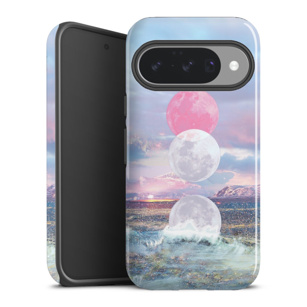 Bei dieser Handyhülle nutzen wird den besonders langlebigen Sublimationsdruck. Dieses raffinierte Druckverfahren sticht durch sein hochwertiges, gestochen scharfes Druckbild in brillanten Farben hervor. Der Druckbereich umfasst die ganze Hartschale inklusive der Ecken und Kanten, lediglich der Silikon-Einleger bleibt einfarbig schwarz. Wähle für Dein Design entweder eines unserer exklusiven Shop-Motive, oder werde kreativ und gestalte Dein Wunschdesign zum Beispiel mit Fotos und Overlays selbst.
