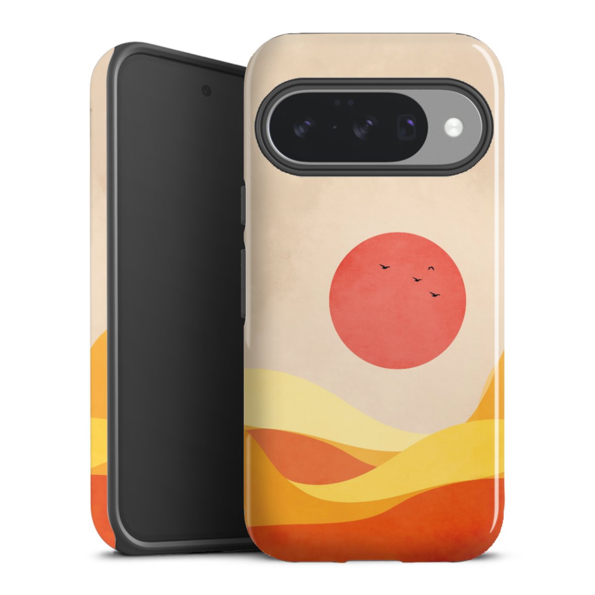 Bei dieser Handyhülle nutzen wird den besonders langlebigen Sublimationsdruck. Dieses raffinierte Druckverfahren sticht durch sein hochwertiges, gestochen scharfes Druckbild in brillanten Farben hervor. Der Druckbereich umfasst die ganze Hartschale inklusive der Ecken und Kanten, lediglich der Silikon-Einleger bleibt einfarbig schwarz. Wähle für Dein Design entweder eines unserer exklusiven Shop-Motive, oder werde kreativ und gestalte Dein Wunschdesign zum Beispiel mit Fotos und Overlays selbst.
