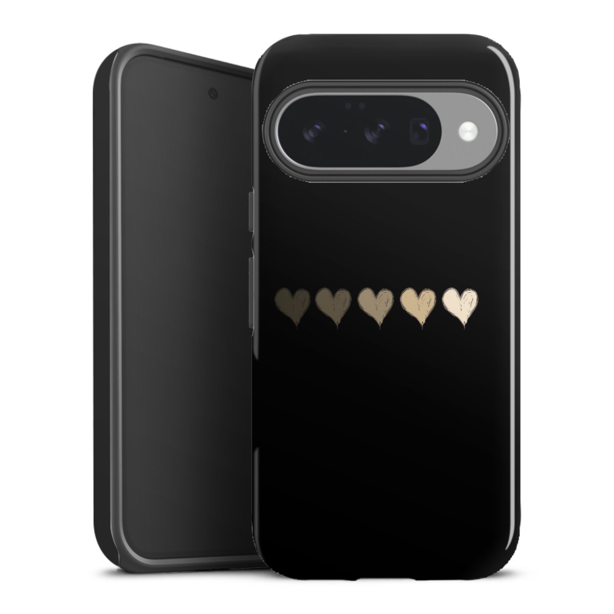 Bei dieser Handyhülle nutzen wird den besonders langlebigen Sublimationsdruck. Dieses raffinierte Druckverfahren sticht durch sein hochwertiges, gestochen scharfes Druckbild in brillanten Farben hervor. Der Druckbereich umfasst die ganze Hartschale inklusive der Ecken und Kanten, lediglich der Silikon-Einleger bleibt einfarbig schwarz. Wähle für Dein Design entweder eines unserer exklusiven Shop-Motive, oder werde kreativ und gestalte Dein Wunschdesign zum Beispiel mit Fotos und Overlays selbst.