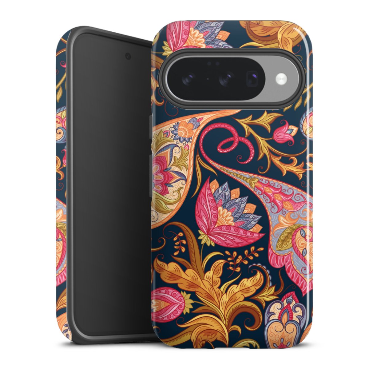 Bei dieser Handyhülle nutzen wird den besonders langlebigen Sublimationsdruck. Dieses raffinierte Druckverfahren sticht durch sein hochwertiges, gestochen scharfes Druckbild in brillanten Farben hervor. Der Druckbereich umfasst die ganze Hartschale inklusive der Ecken und Kanten, lediglich der Silikon-Einleger bleibt einfarbig schwarz. Wähle für Dein Design entweder eines unserer exklusiven Shop-Motive, oder werde kreativ und gestalte Dein Wunschdesign zum Beispiel mit Fotos und Overlays selbst.