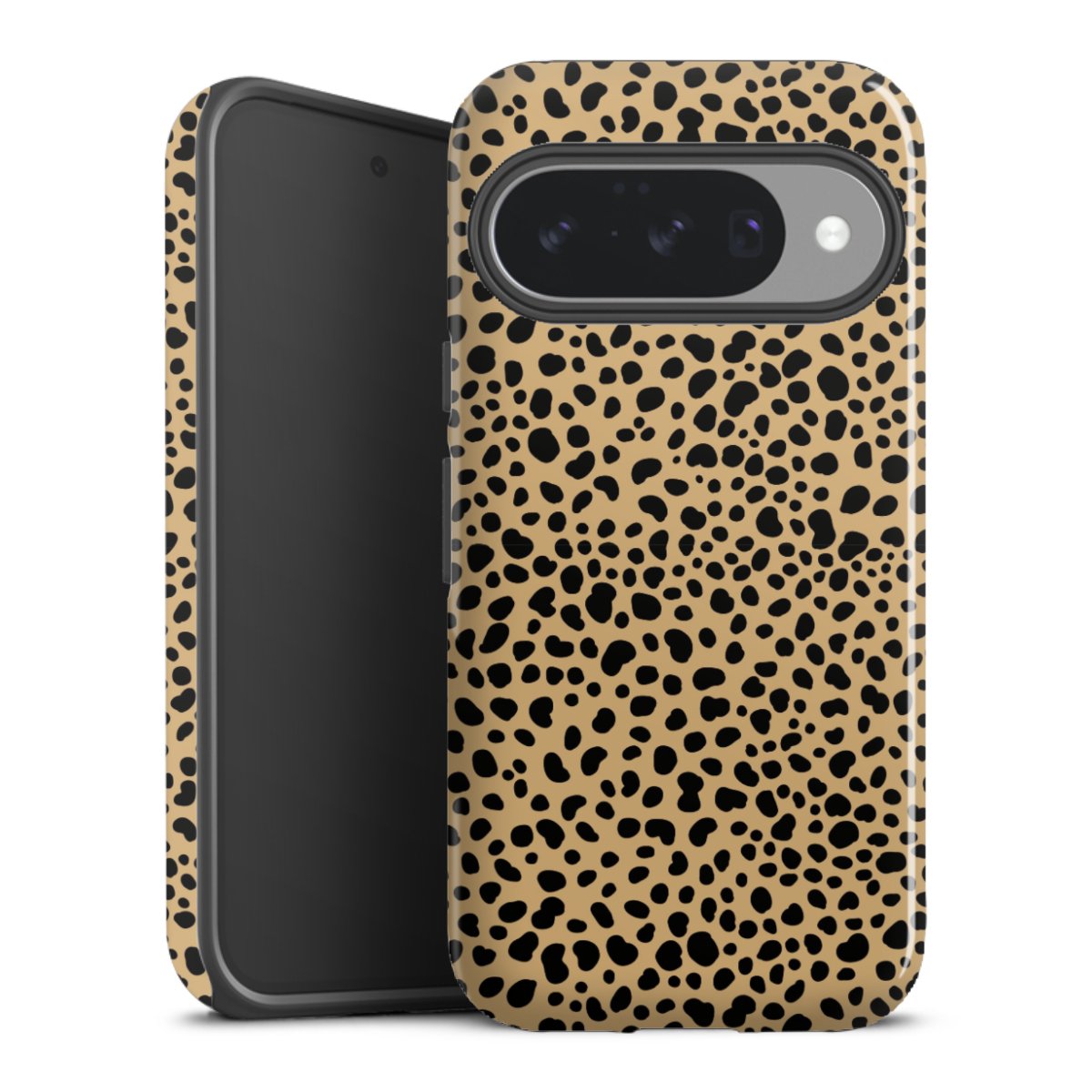 Bei dieser Handyhülle nutzen wird den besonders langlebigen Sublimationsdruck. Dieses raffinierte Druckverfahren sticht durch sein hochwertiges, gestochen scharfes Druckbild in brillanten Farben hervor. Der Druckbereich umfasst die ganze Hartschale inklusive der Ecken und Kanten, lediglich der Silikon-Einleger bleibt einfarbig schwarz. Wähle für Dein Design entweder eines unserer exklusiven Shop-Motive, oder werde kreativ und gestalte Dein Wunschdesign zum Beispiel mit Fotos und Overlays selbst.