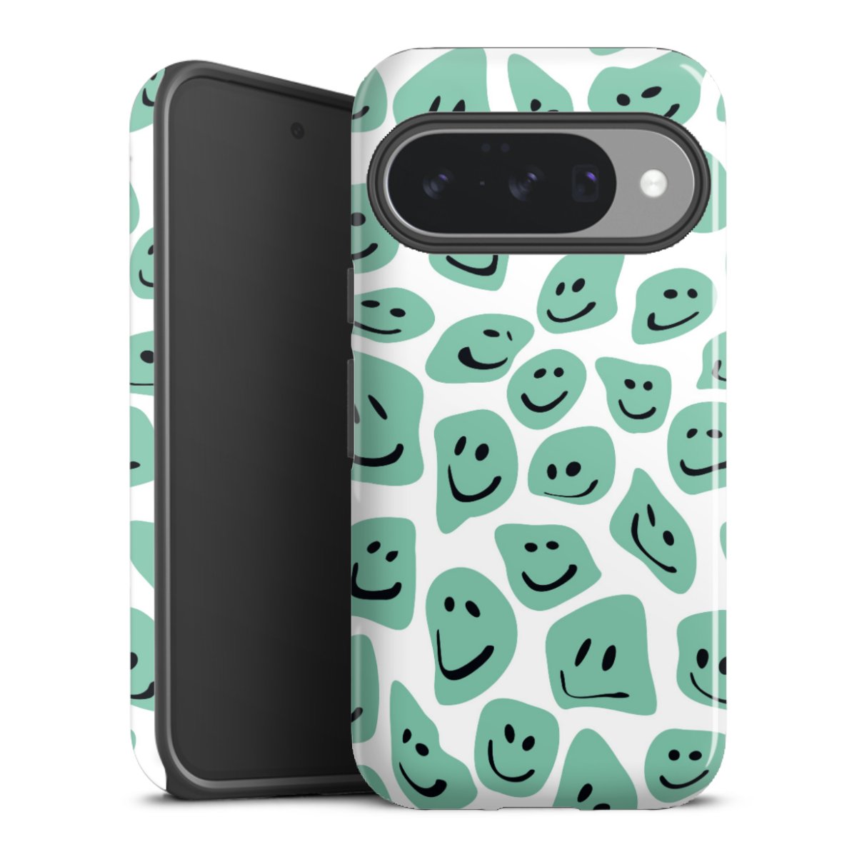 Unsere sicherste Schutzhülle vereint die Vorteile der Silikonhülle mit den Vorzügen des Premium Cases und besteht aus zwei Teilen: Innen federt der flexible Silikonkern aus robustem TPU (thermoplastisches Polyurethan) zuverlässig Stöße und Stürze ab, außen sorgt die widerstandsfähige und langlebige Hartschale aus Polycarbonat für zusätzliche Stabilität. Die Oberfläche der insgesamt 2,6 mm starken Hülle fühlt sich angenehm glatt an und macht das Tough Case zu einem echten Handschmeichler. Die Handyhülle ist in glänzend und matt erhältlich, der Silikoneinleger ist Schwarz.