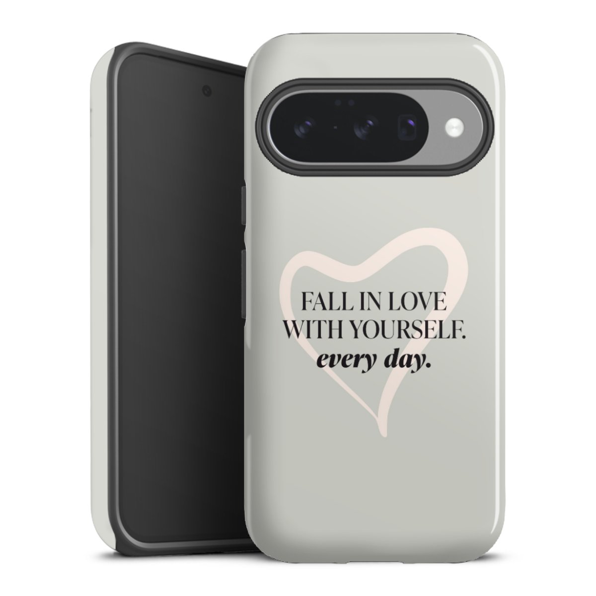 Bringe zuerst den Silikonkern an Dein Handy an, sodass alle Ecken umschlossen sind. Setze nun die Hartschale auf den Silikon-Einleger. Pflege-Tipp: Tough Cases lassen sich mit einem feuchten Tuch und mildem Reinigungsmittel säubern. Die glänzende Variante kannst du hin und wieder mit Glasreiniger einsprühen und mit einem Mikrofasertuch trocken polieren, damit sie so schön bleibt wie am Anfang.