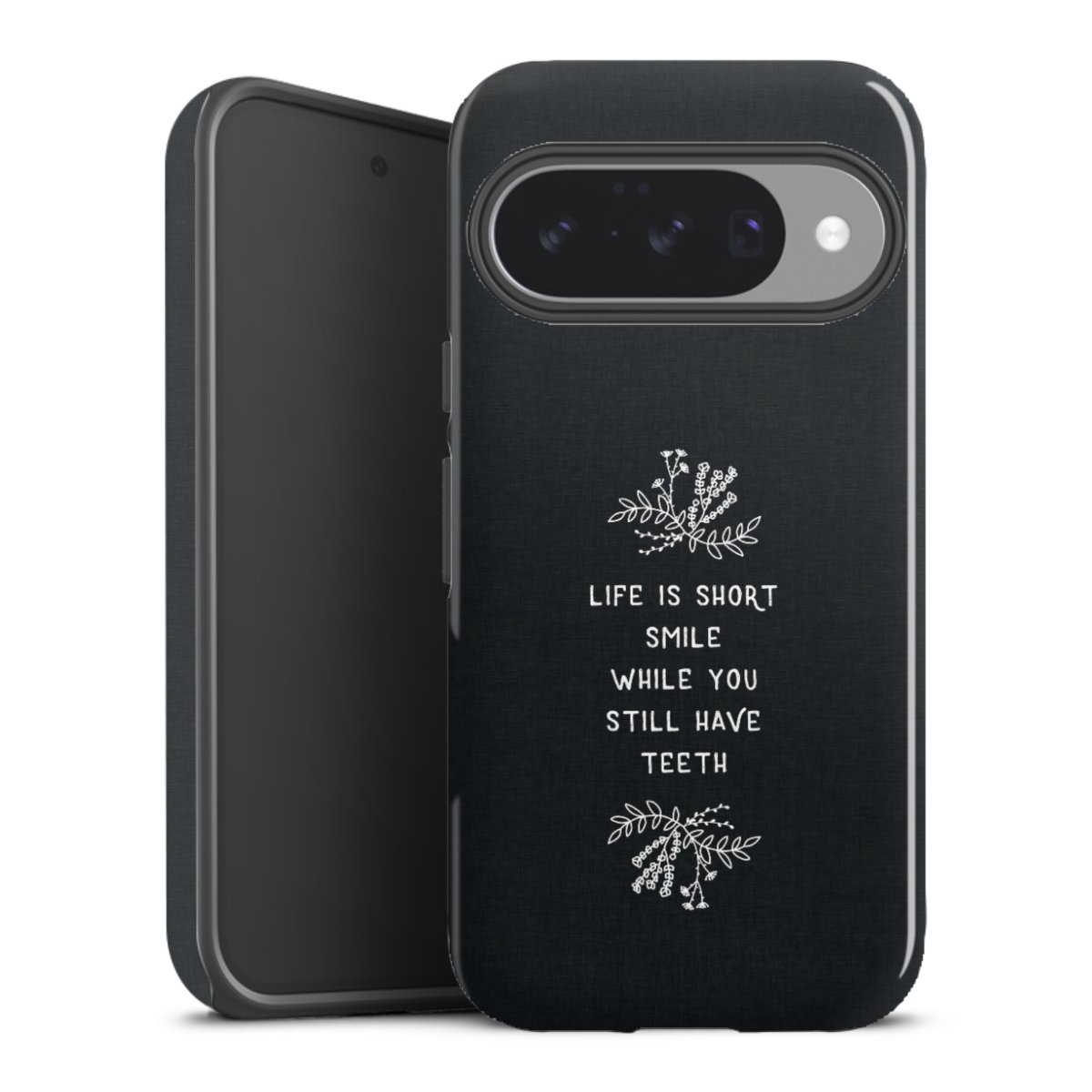 Bei dieser Handyhülle nutzen wird den besonders langlebigen Sublimationsdruck. Dieses raffinierte Druckverfahren sticht durch sein hochwertiges, gestochen scharfes Druckbild in brillanten Farben hervor. Der Druckbereich umfasst die ganze Hartschale inklusive der Ecken und Kanten, lediglich der Silikon-Einleger bleibt einfarbig schwarz. Wähle für Dein Design entweder eines unserer exklusiven Shop-Motive, oder werde kreativ und gestalte Dein Wunschdesign zum Beispiel mit Fotos und Overlays selbst.