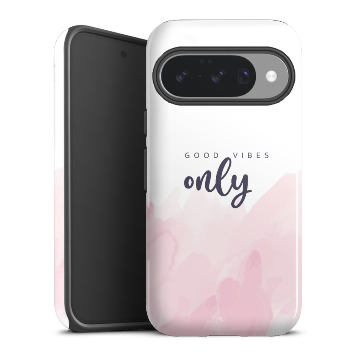 Bei dieser Handyhülle nutzen wird den besonders langlebigen Sublimationsdruck. Dieses raffinierte Druckverfahren sticht durch sein hochwertiges, gestochen scharfes Druckbild in brillanten Farben hervor. Der Druckbereich umfasst die ganze Hartschale inklusive der Ecken und Kanten, lediglich der Silikon-Einleger bleibt einfarbig schwarz. Wähle für Dein Design entweder eines unserer exklusiven Shop-Motive, oder werde kreativ und gestalte Dein Wunschdesign zum Beispiel mit Fotos und Overlays selbst.