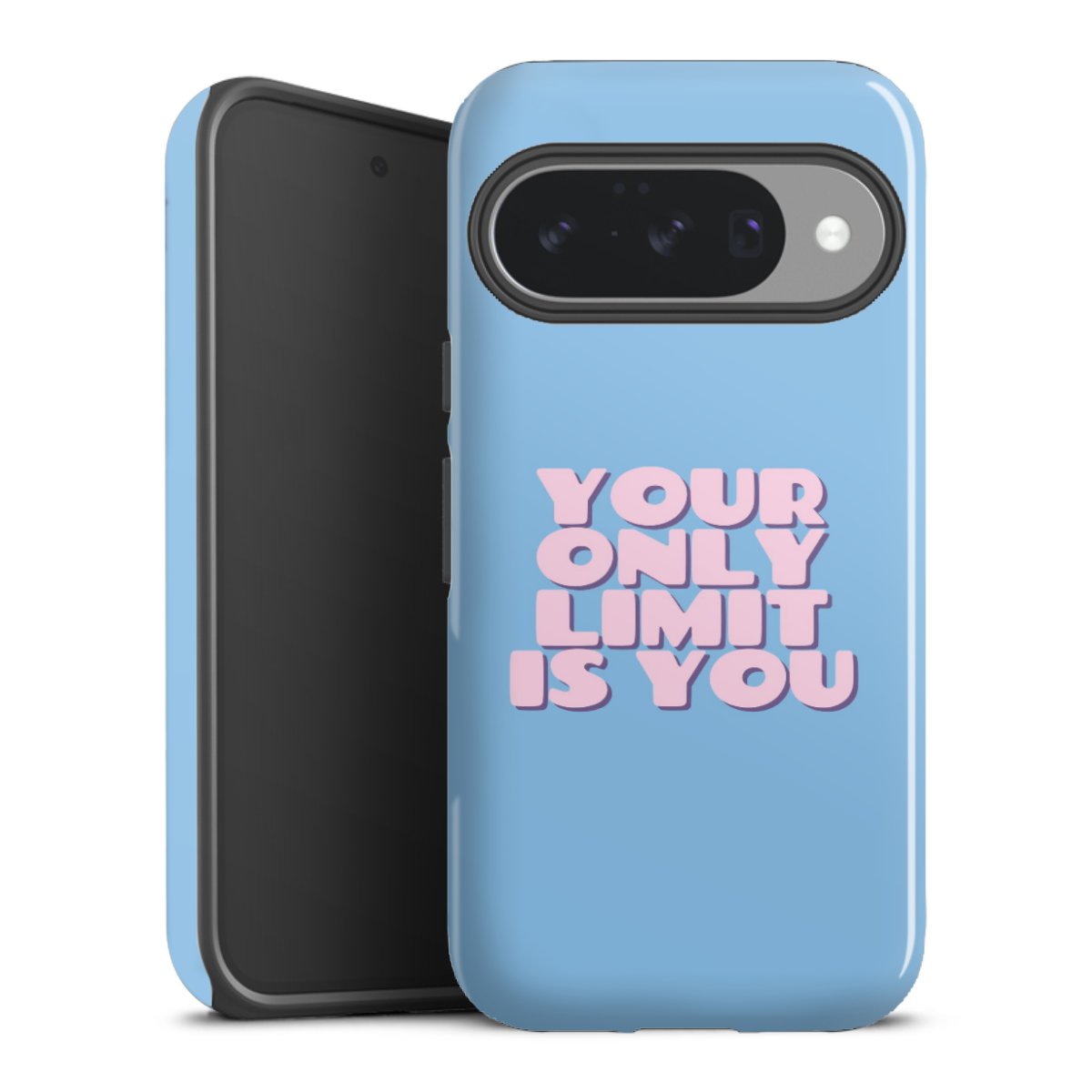 Bei dieser Handyhülle nutzen wird den besonders langlebigen Sublimationsdruck. Dieses raffinierte Druckverfahren sticht durch sein hochwertiges, gestochen scharfes Druckbild in brillanten Farben hervor. Der Druckbereich umfasst die ganze Hartschale inklusive der Ecken und Kanten, lediglich der Silikon-Einleger bleibt einfarbig schwarz. Wähle für Dein Design entweder eines unserer exklusiven Shop-Motive, oder werde kreativ und gestalte Dein Wunschdesign zum Beispiel mit Fotos und Overlays selbst.