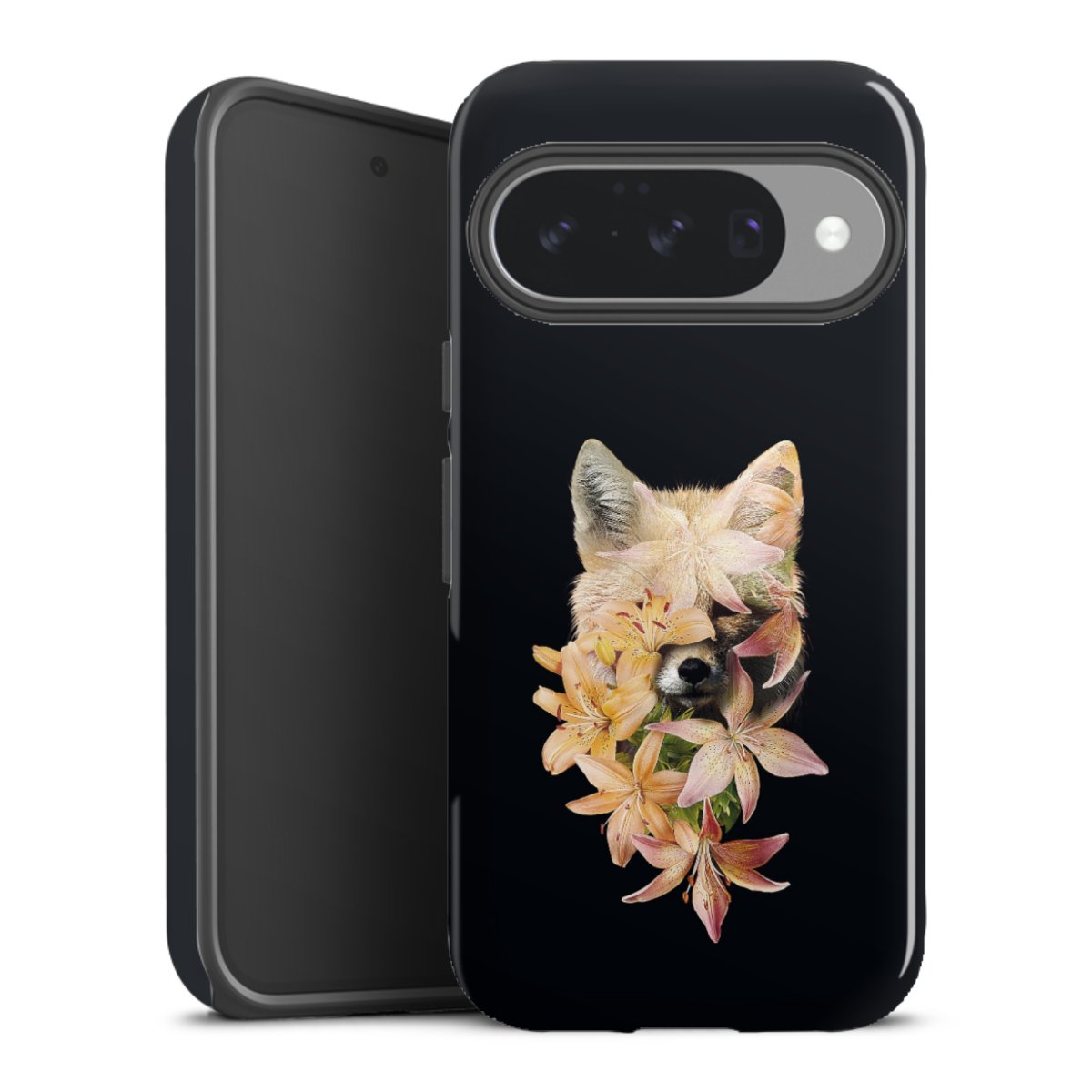 Bei dieser Handyhülle nutzen wird den besonders langlebigen Sublimationsdruck. Dieses raffinierte Druckverfahren sticht durch sein hochwertiges, gestochen scharfes Druckbild in brillanten Farben hervor. Der Druckbereich umfasst die ganze Hartschale inklusive der Ecken und Kanten, lediglich der Silikon-Einleger bleibt einfarbig schwarz. Wähle für Dein Design entweder eines unserer exklusiven Shop-Motive, oder werde kreativ und gestalte Dein Wunschdesign zum Beispiel mit Fotos und Overlays selbst.