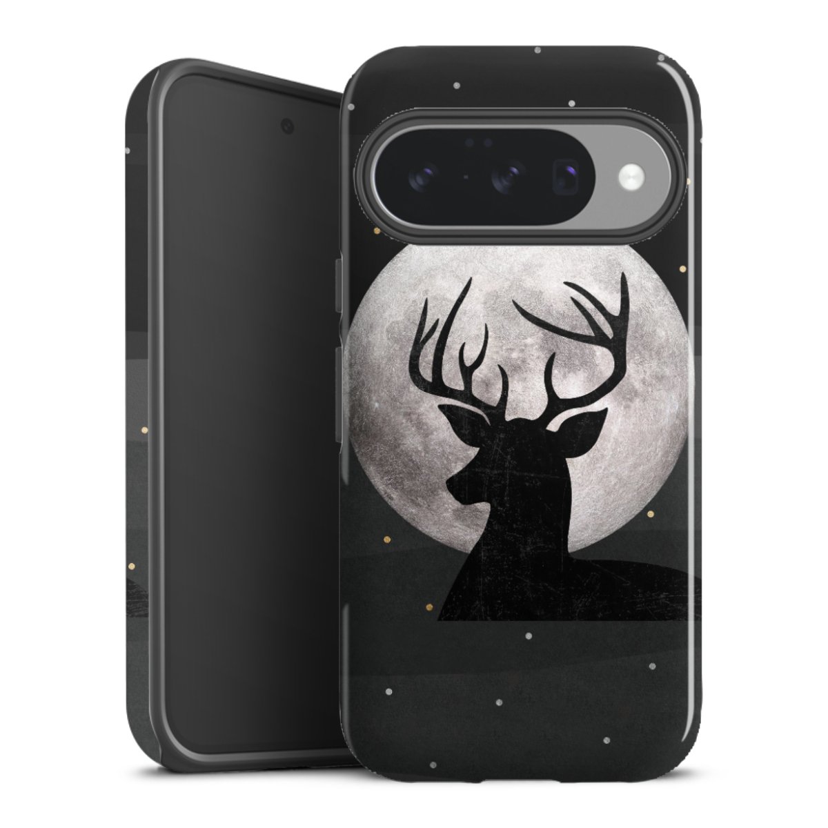 Bei dieser Handyhülle nutzen wird den besonders langlebigen Sublimationsdruck. Dieses raffinierte Druckverfahren sticht durch sein hochwertiges, gestochen scharfes Druckbild in brillanten Farben hervor. Der Druckbereich umfasst die ganze Hartschale inklusive der Ecken und Kanten, lediglich der Silikon-Einleger bleibt einfarbig schwarz. Wähle für Dein Design entweder eines unserer exklusiven Shop-Motive, oder werde kreativ und gestalte Dein Wunschdesign zum Beispiel mit Fotos und Overlays selbst.