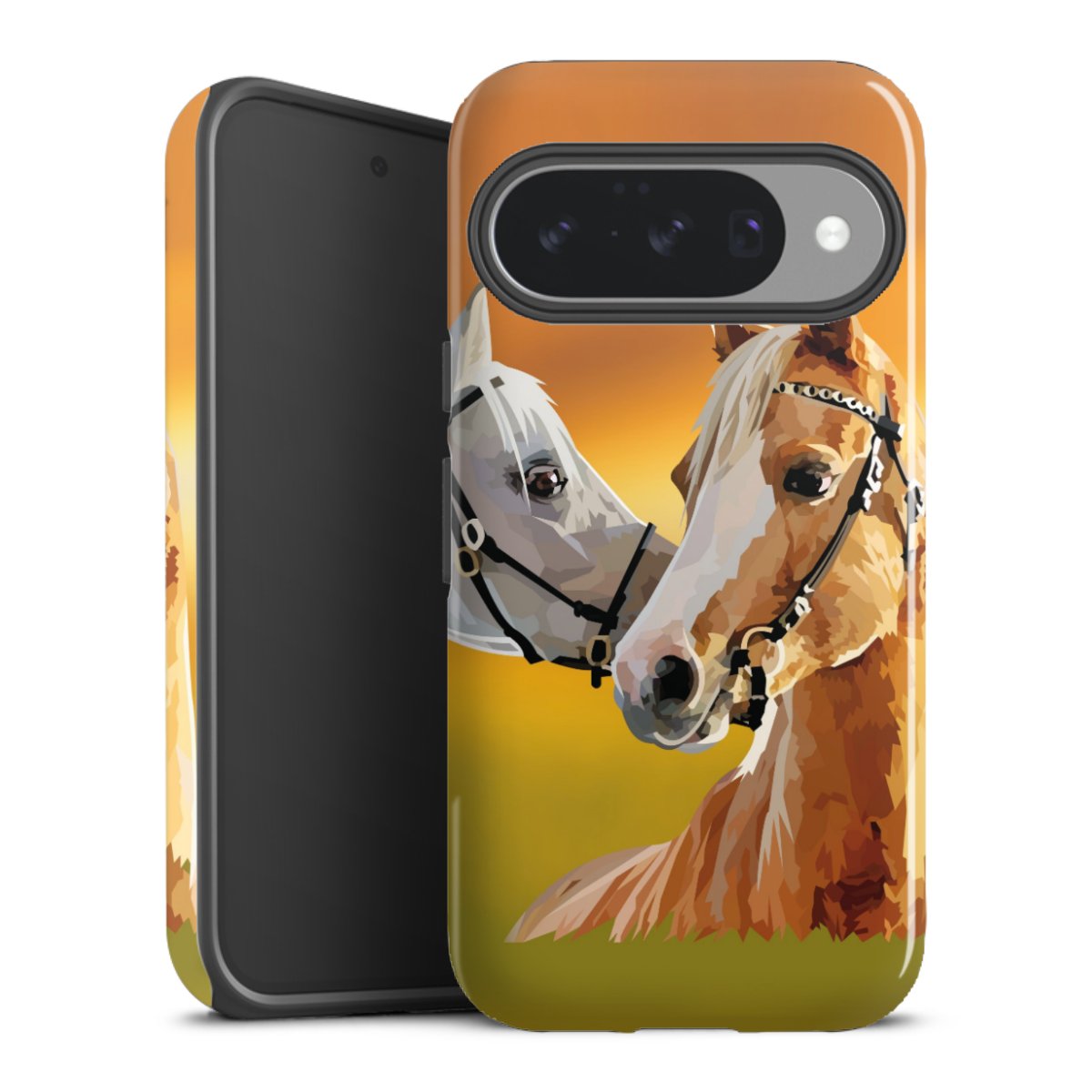Bei dieser Handyhülle nutzen wird den besonders langlebigen Sublimationsdruck. Dieses raffinierte Druckverfahren sticht durch sein hochwertiges, gestochen scharfes Druckbild in brillanten Farben hervor. Der Druckbereich umfasst die ganze Hartschale inklusive der Ecken und Kanten, lediglich der Silikon-Einleger bleibt einfarbig schwarz. Wähle für Dein Design entweder eines unserer exklusiven Shop-Motive, oder werde kreativ und gestalte Dein Wunschdesign zum Beispiel mit Fotos und Overlays selbst.