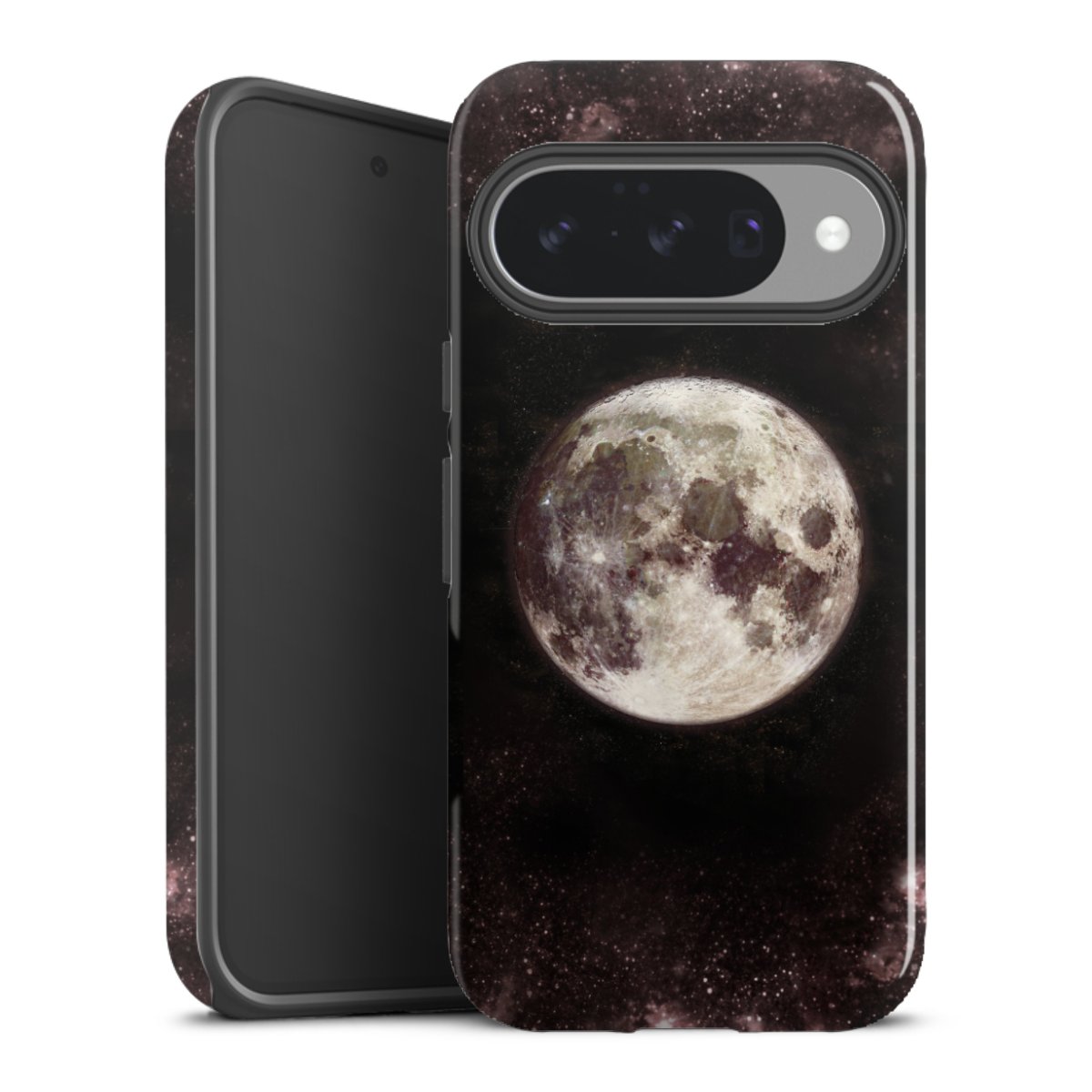 Bei dieser Handyhülle nutzen wird den besonders langlebigen Sublimationsdruck. Dieses raffinierte Druckverfahren sticht durch sein hochwertiges, gestochen scharfes Druckbild in brillanten Farben hervor. Der Druckbereich umfasst die ganze Hartschale inklusive der Ecken und Kanten, lediglich der Silikon-Einleger bleibt einfarbig schwarz. Wähle für Dein Design entweder eines unserer exklusiven Shop-Motive, oder werde kreativ und gestalte Dein Wunschdesign zum Beispiel mit Fotos und Overlays selbst.