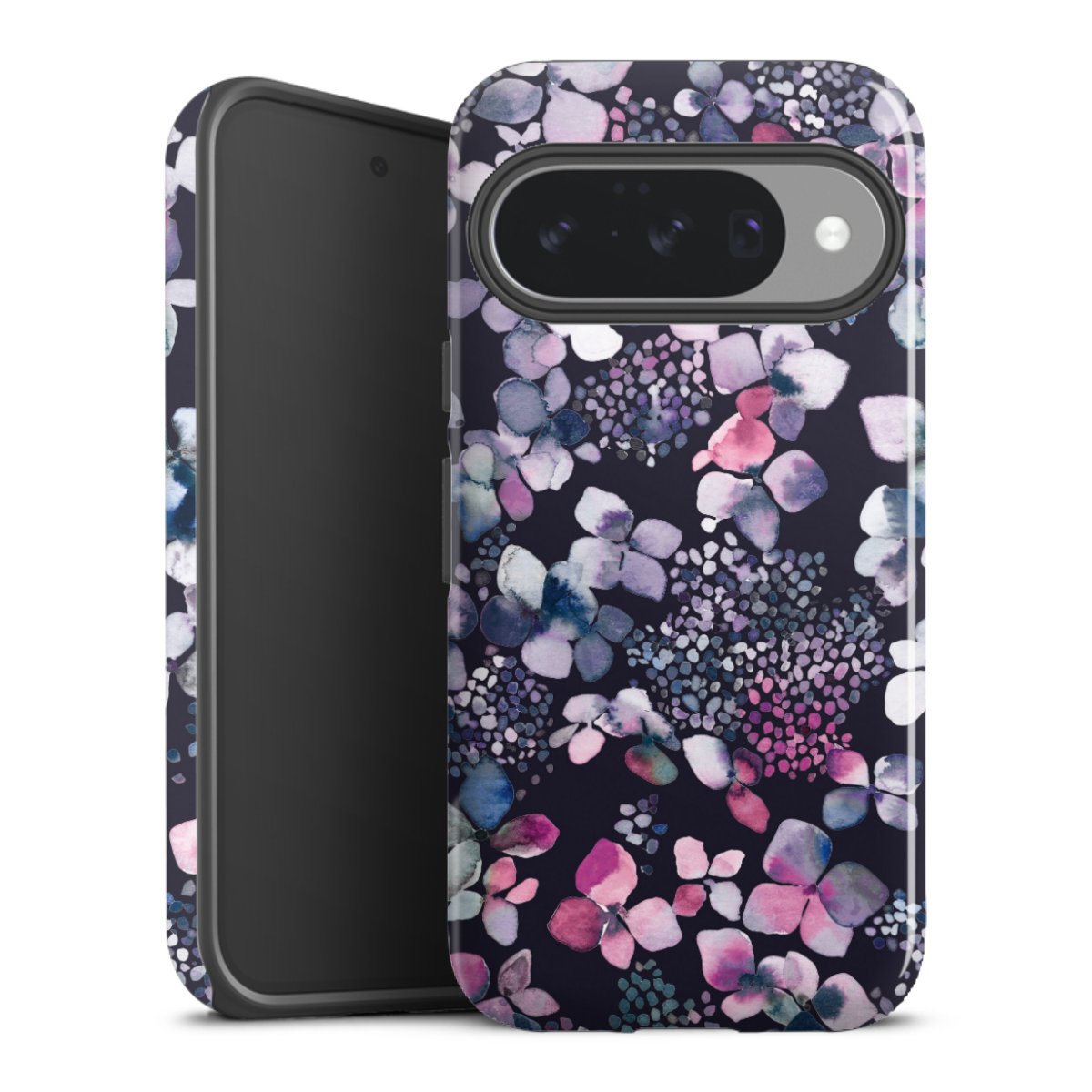 Bei dieser Handyhülle nutzen wird den besonders langlebigen Sublimationsdruck. Dieses raffinierte Druckverfahren sticht durch sein hochwertiges, gestochen scharfes Druckbild in brillanten Farben hervor. Der Druckbereich umfasst die ganze Hartschale inklusive der Ecken und Kanten, lediglich der Silikon-Einleger bleibt einfarbig schwarz. Wähle für Dein Design entweder eines unserer exklusiven Shop-Motive, oder werde kreativ und gestalte Dein Wunschdesign zum Beispiel mit Fotos und Overlays selbst.