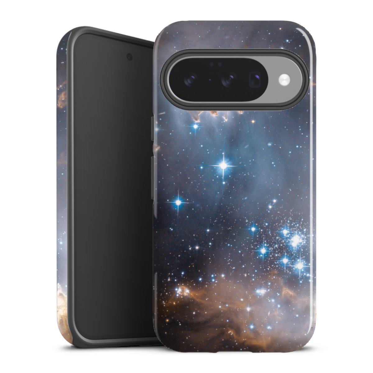 Bei dieser Handyhülle nutzen wird den besonders langlebigen Sublimationsdruck. Dieses raffinierte Druckverfahren sticht durch sein hochwertiges, gestochen scharfes Druckbild in brillanten Farben hervor. Der Druckbereich umfasst die ganze Hartschale inklusive der Ecken und Kanten, lediglich der Silikon-Einleger bleibt einfarbig schwarz. Wähle für Dein Design entweder eines unserer exklusiven Shop-Motive, oder werde kreativ und gestalte Dein Wunschdesign zum Beispiel mit Fotos und Overlays selbst.