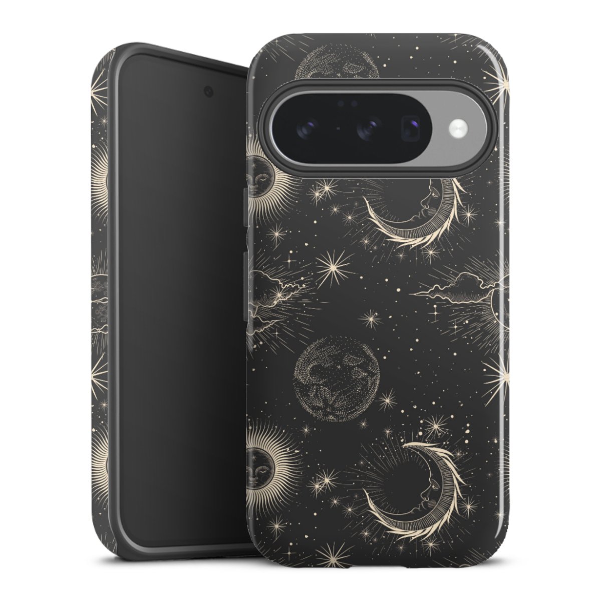 Bei dieser Handyhülle nutzen wird den besonders langlebigen Sublimationsdruck. Dieses raffinierte Druckverfahren sticht durch sein hochwertiges, gestochen scharfes Druckbild in brillanten Farben hervor. Der Druckbereich umfasst die ganze Hartschale inklusive der Ecken und Kanten, lediglich der Silikon-Einleger bleibt einfarbig schwarz. Wähle für Dein Design entweder eines unserer exklusiven Shop-Motive, oder werde kreativ und gestalte Dein Wunschdesign zum Beispiel mit Fotos und Overlays selbst.