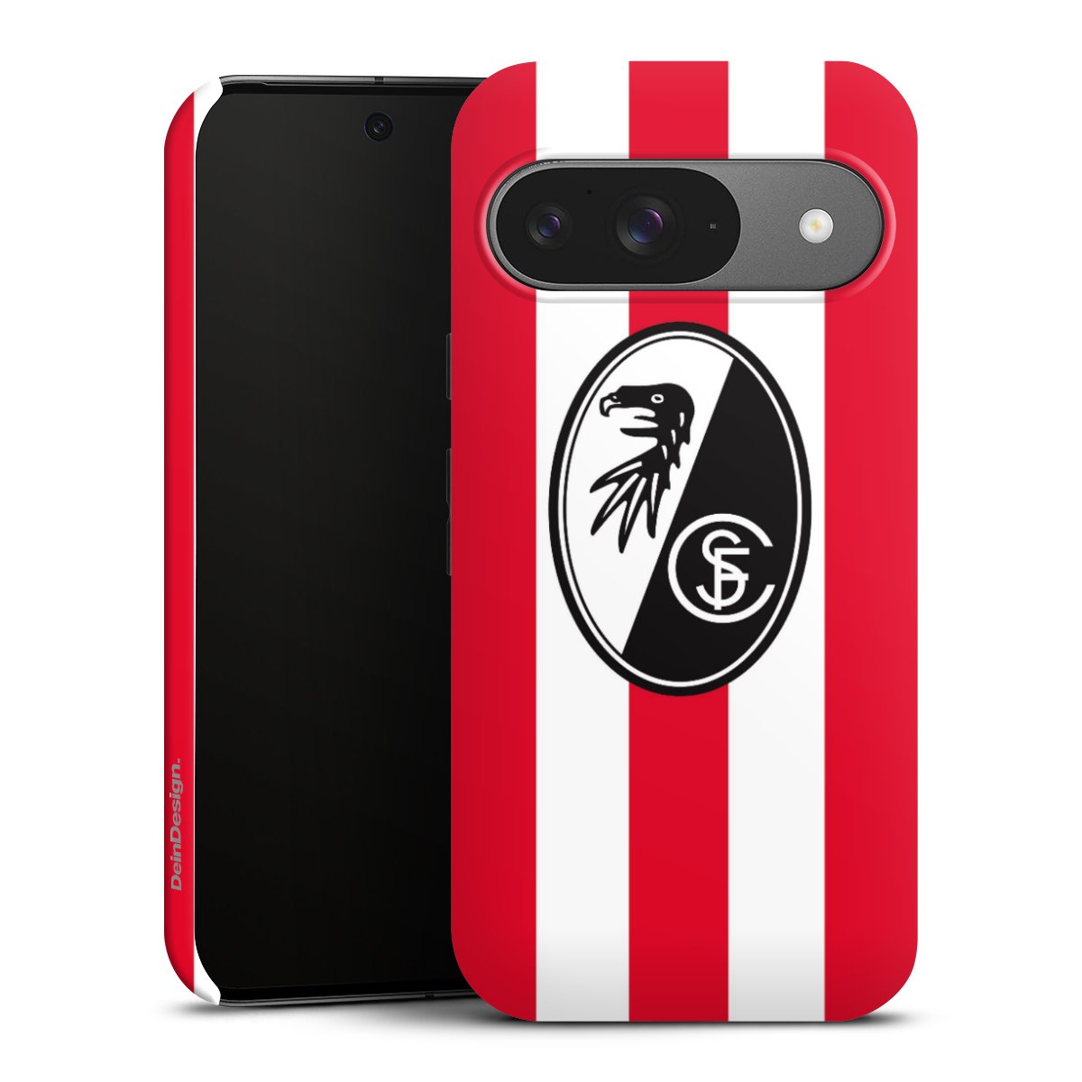 Bei DeinDesign kannst Du Dir eine individuelle SC-Freiburg-Handyhülle aussuchen, auf der das stilvolle schwarz-weiße Logo mit dem Greifenkopf zu sehen ist. Durch eine solche Hülle erhält Dein Smartphone ein unverkennbar individuelles Design. Der SC-Freiburg-Shop bietet lizensierte Fanartikel für alle Fans der Breisgau-Brasilianer.