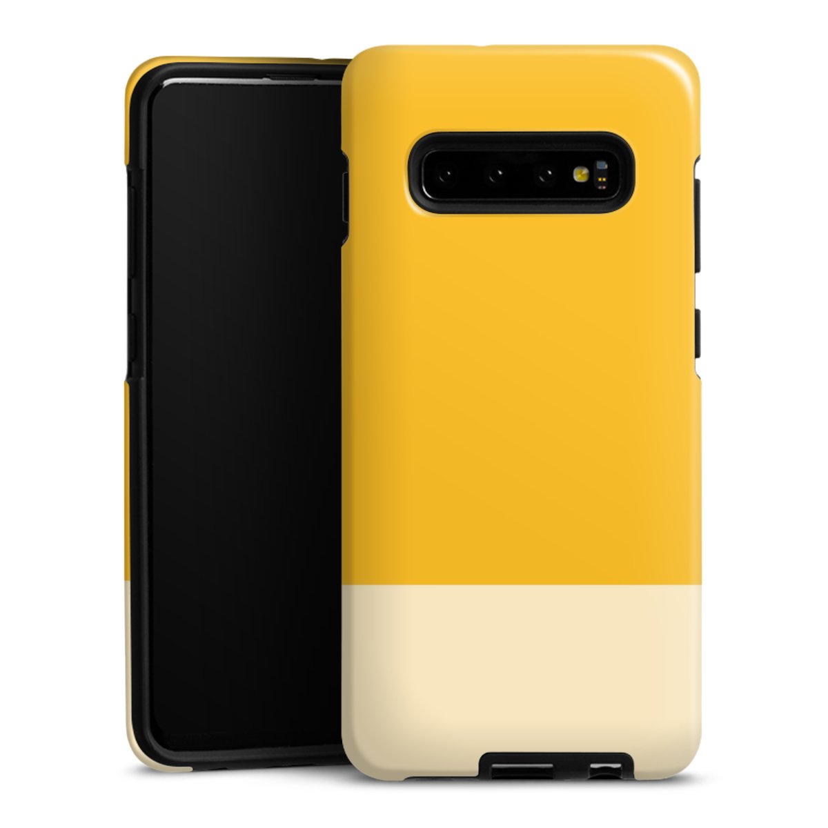 Bei dieser Handyhülle nutzen wird den besonders langlebigen Sublimationsdruck. Dieses raffinierte Druckverfahren sticht durch sein hochwertiges, gestochen scharfes Druckbild in brillanten Farben hervor. Der Druckbereich umfasst die ganze Hartschale inklusive der Ecken und Kanten, lediglich der Silikon-Einleger bleibt einfarbig schwarz. Wähle für Dein Design entweder eines unserer exklusiven Shop-Motive, oder werde kreativ und gestalte Dein Wunschdesign zum Beispiel mit Fotos und Overlays selbst.