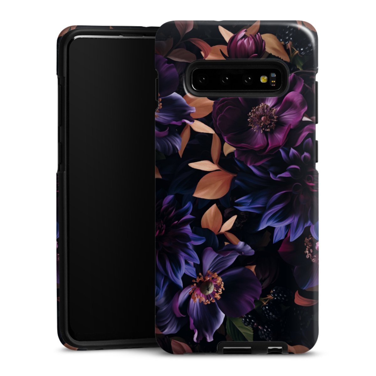 Bei dieser Handyhülle nutzen wird den besonders langlebigen Sublimationsdruck. Dieses raffinierte Druckverfahren sticht durch sein hochwertiges, gestochen scharfes Druckbild in brillanten Farben hervor. Der Druckbereich umfasst die ganze Hartschale inklusive der Ecken und Kanten, lediglich der Silikon-Einleger bleibt einfarbig schwarz. Wähle für Dein Design entweder eines unserer exklusiven Shop-Motive, oder werde kreativ und gestalte Dein Wunschdesign zum Beispiel mit Fotos und Overlays selbst.