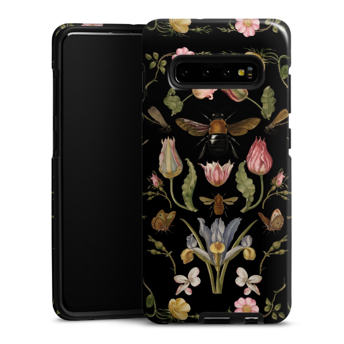 Bei dieser Handyhülle nutzen wird den besonders langlebigen Sublimationsdruck. Dieses raffinierte Druckverfahren sticht durch sein hochwertiges, gestochen scharfes Druckbild in brillanten Farben hervor. Der Druckbereich umfasst die ganze Hartschale inklusive der Ecken und Kanten, lediglich der Silikon-Einleger bleibt einfarbig schwarz. Wähle für Dein Design entweder eines unserer exklusiven Shop-Motive, oder werde kreativ und gestalte Dein Wunschdesign zum Beispiel mit Fotos und Overlays selbst.