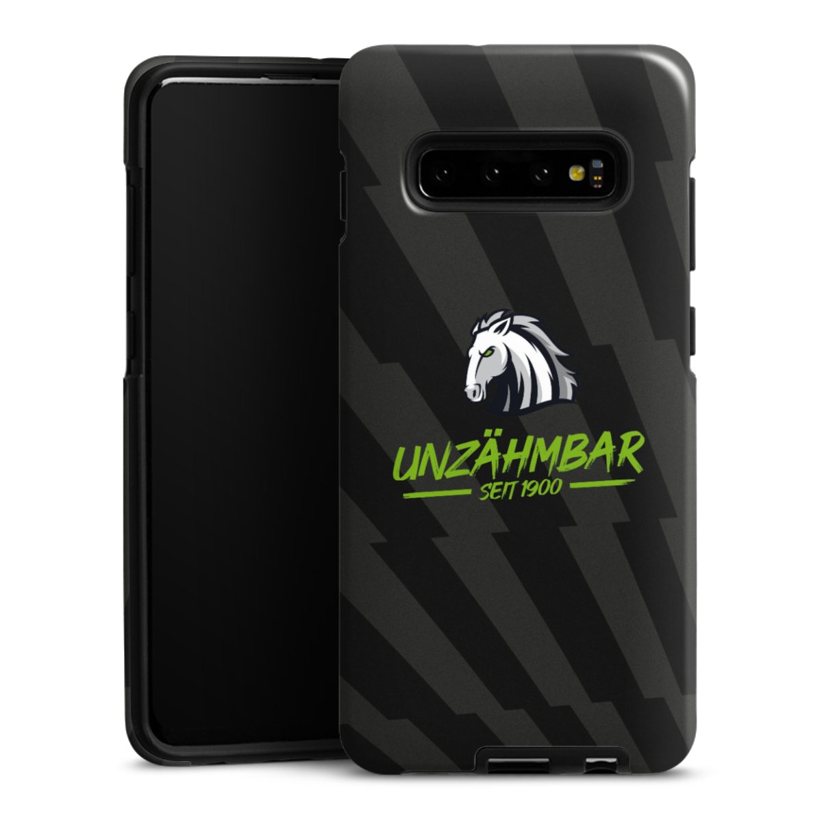 Bei dieser Handyhülle nutzen wird den besonders langlebigen Sublimationsdruck. Dieses raffinierte Druckverfahren sticht durch sein hochwertiges, gestochen scharfes Druckbild in brillanten Farben hervor. Der Druckbereich umfasst die ganze Hartschale inklusive der Ecken und Kanten, lediglich der Silikon-Einleger bleibt einfarbig schwarz. Wähle für Dein Design entweder eines unserer exklusiven Shop-Motive, oder werde kreativ und gestalte Dein Wunschdesign zum Beispiel mit Fotos und Overlays selbst.