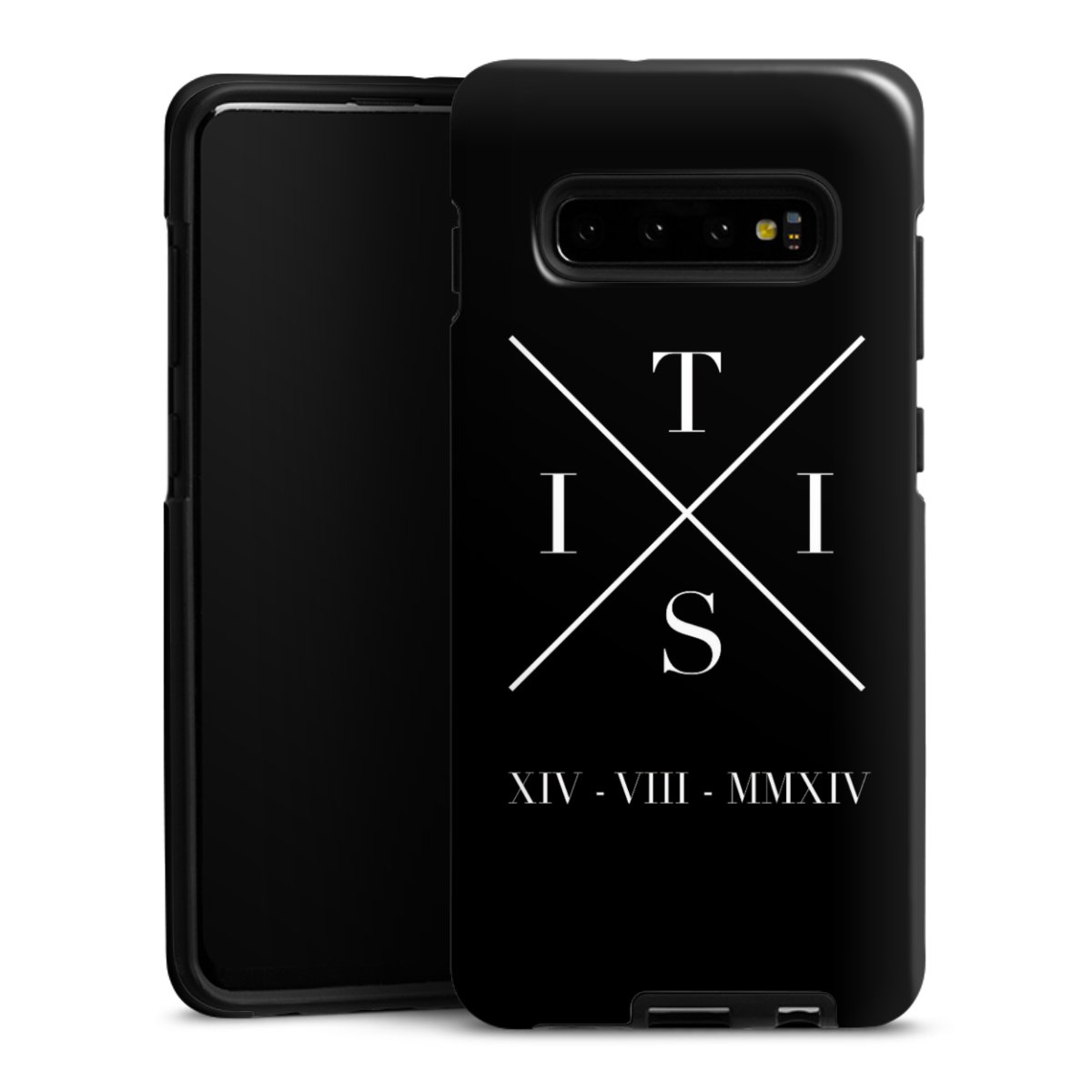 Bei dieser Handyhülle nutzen wird den besonders langlebigen Sublimationsdruck. Dieses raffinierte Druckverfahren sticht durch sein hochwertiges, gestochen scharfes Druckbild in brillanten Farben hervor. Der Druckbereich umfasst die ganze Hartschale inklusive der Ecken und Kanten, lediglich der Silikon-Einleger bleibt einfarbig schwarz. Wähle für Dein Design entweder eines unserer exklusiven Shop-Motive, oder werde kreativ und gestalte Dein Wunschdesign zum Beispiel mit Fotos und Overlays selbst.