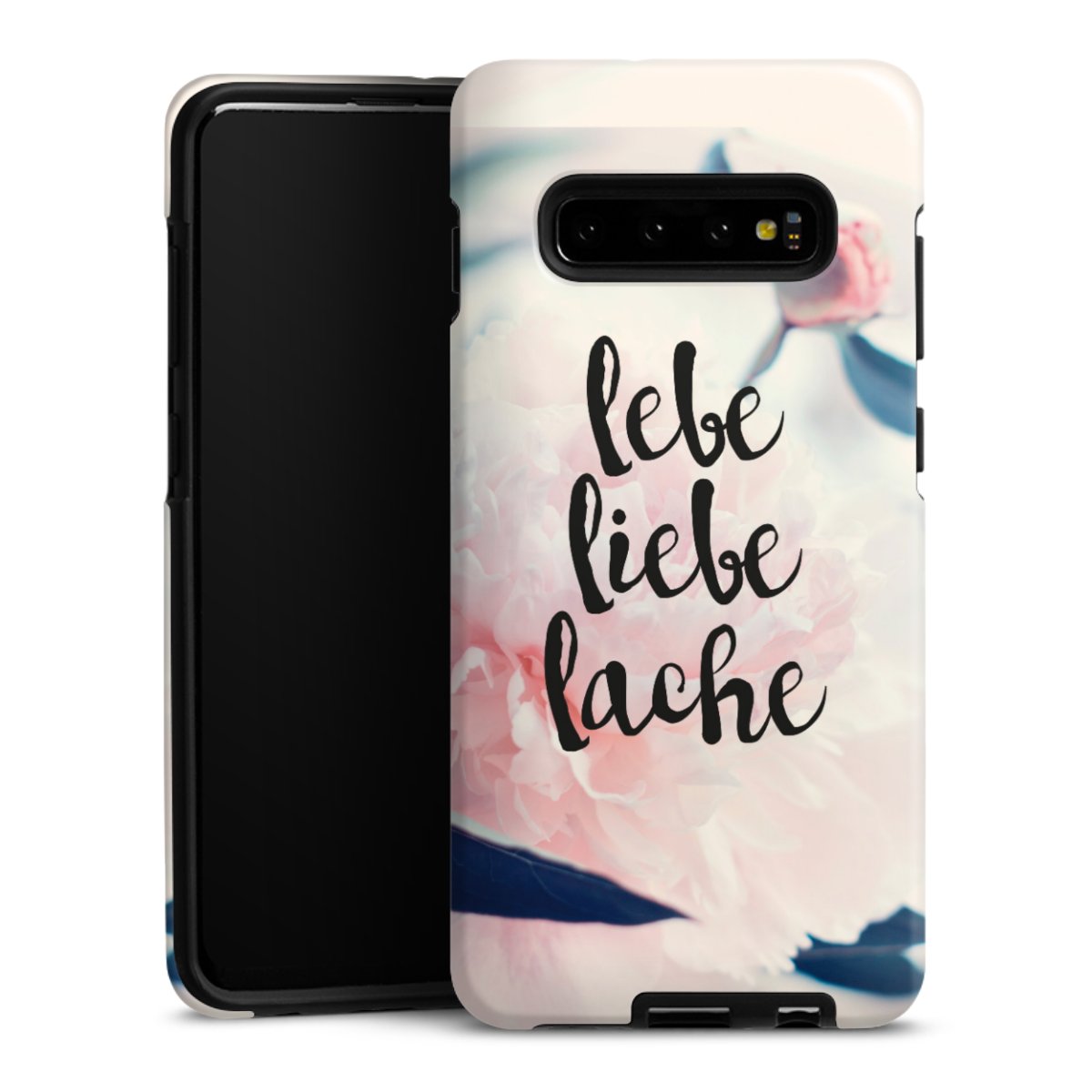 Bei dieser Handyhülle nutzen wird den besonders langlebigen Sublimationsdruck. Dieses raffinierte Druckverfahren sticht durch sein hochwertiges, gestochen scharfes Druckbild in brillanten Farben hervor. Der Druckbereich umfasst die ganze Hartschale inklusive der Ecken und Kanten, lediglich der Silikon-Einleger bleibt einfarbig schwarz. Wähle für Dein Design entweder eines unserer exklusiven Shop-Motive, oder werde kreativ und gestalte Dein Wunschdesign zum Beispiel mit Fotos und Overlays selbst.