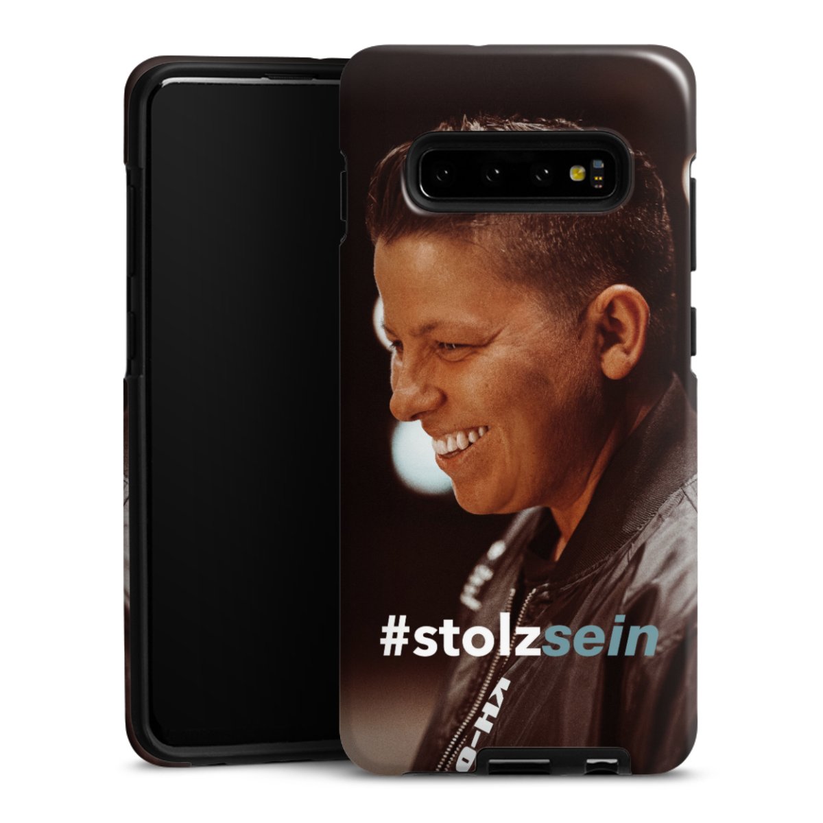 Bei dieser Handyhülle nutzen wird den besonders langlebigen Sublimationsdruck. Dieses raffinierte Druckverfahren sticht durch sein hochwertiges, gestochen scharfes Druckbild in brillanten Farben hervor. Der Druckbereich umfasst die ganze Hartschale inklusive der Ecken und Kanten, lediglich der Silikon-Einleger bleibt einfarbig schwarz. Wähle für Dein Design entweder eines unserer exklusiven Shop-Motive, oder werde kreativ und gestalte Dein Wunschdesign zum Beispiel mit Fotos und Overlays selbst.