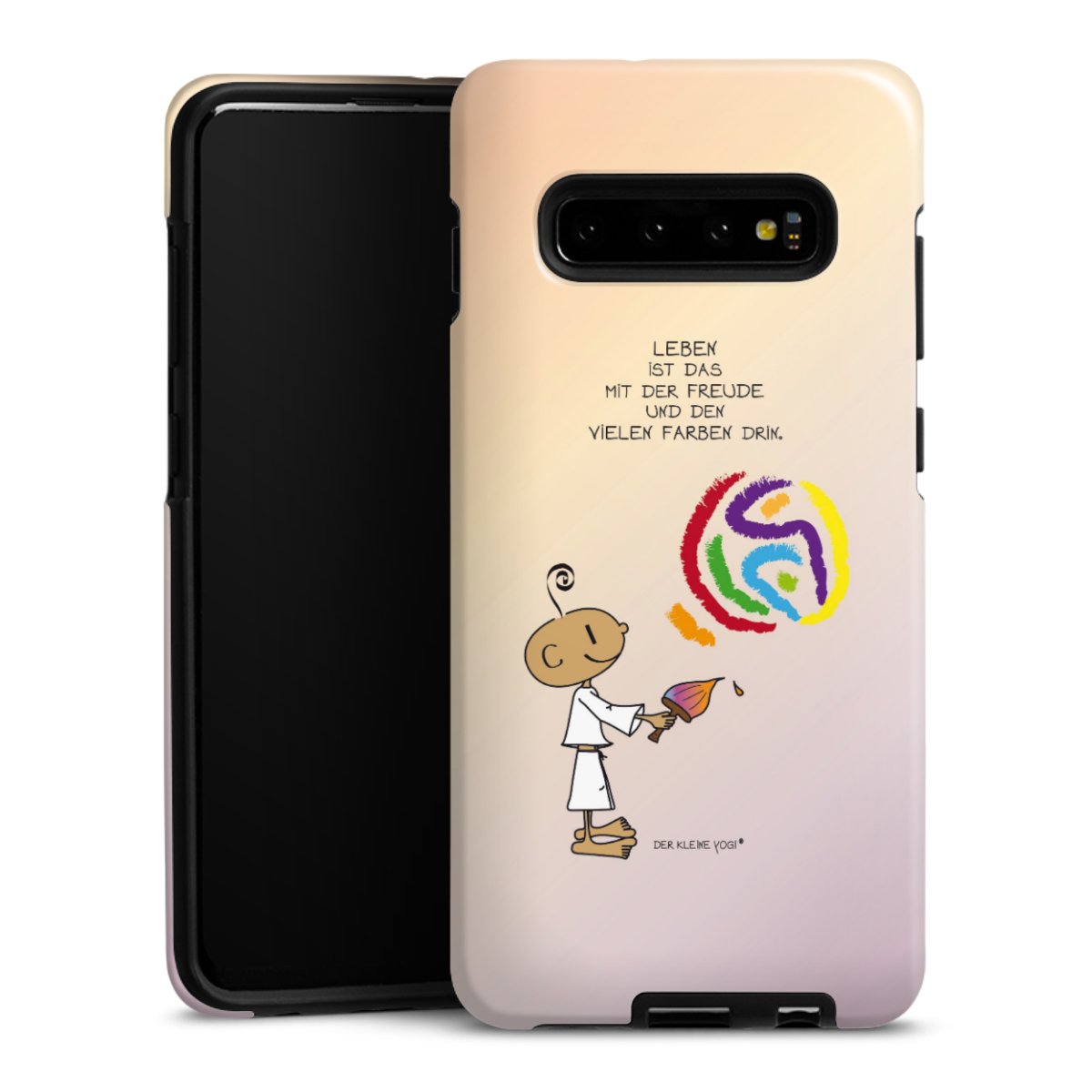 Bei dieser Handyhülle nutzen wird den besonders langlebigen Sublimationsdruck. Dieses raffinierte Druckverfahren sticht durch sein hochwertiges, gestochen scharfes Druckbild in brillanten Farben hervor. Der Druckbereich umfasst die ganze Hartschale inklusive der Ecken und Kanten, lediglich der Silikon-Einleger bleibt einfarbig schwarz. Wähle für Dein Design entweder eines unserer exklusiven Shop-Motive, oder werde kreativ und gestalte Dein Wunschdesign zum Beispiel mit Fotos und Overlays selbst.