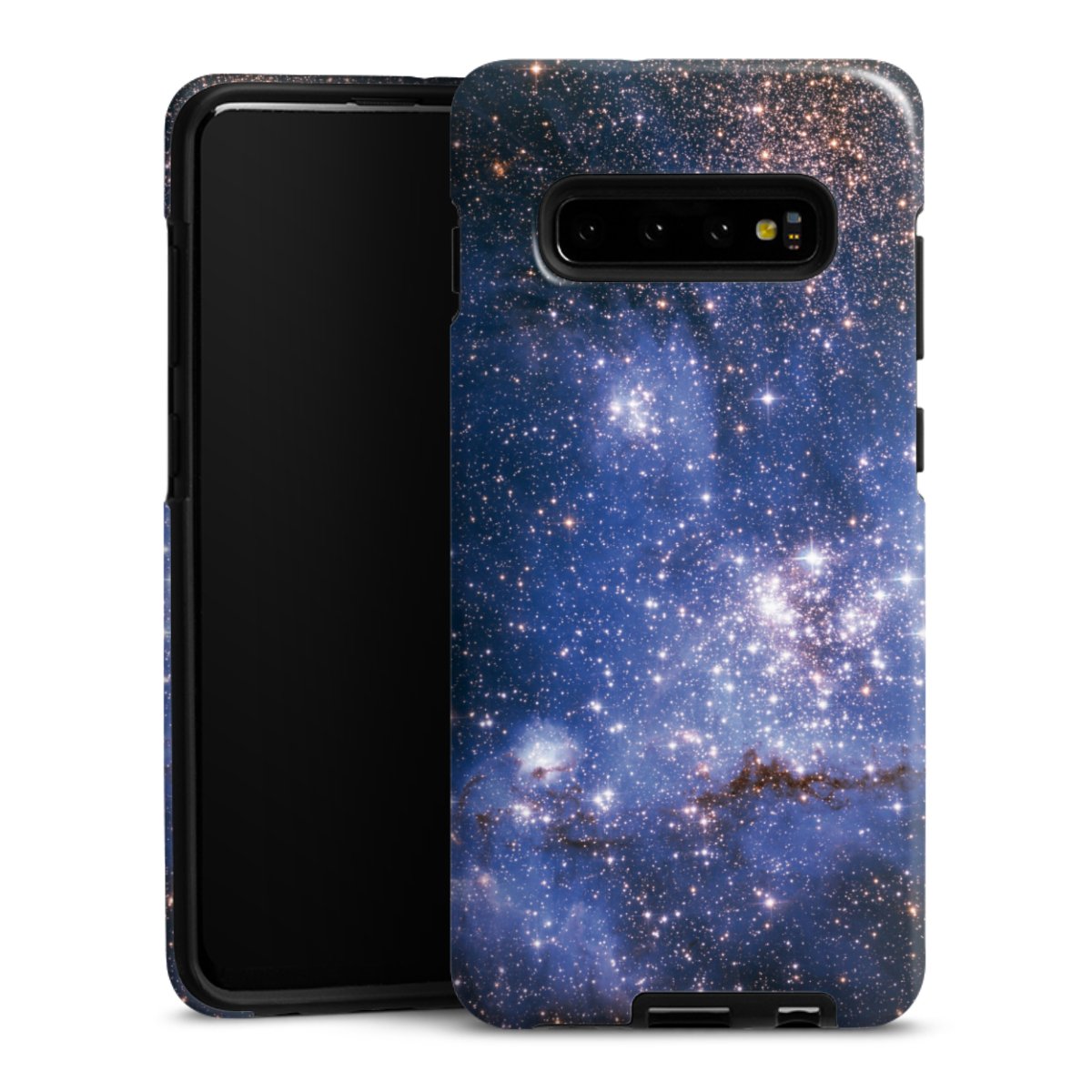 Bei dieser Handyhülle nutzen wird den besonders langlebigen Sublimationsdruck. Dieses raffinierte Druckverfahren sticht durch sein hochwertiges, gestochen scharfes Druckbild in brillanten Farben hervor. Der Druckbereich umfasst die ganze Hartschale inklusive der Ecken und Kanten, lediglich der Silikon-Einleger bleibt einfarbig schwarz. Wähle für Dein Design entweder eines unserer exklusiven Shop-Motive, oder werde kreativ und gestalte Dein Wunschdesign zum Beispiel mit Fotos und Overlays selbst.