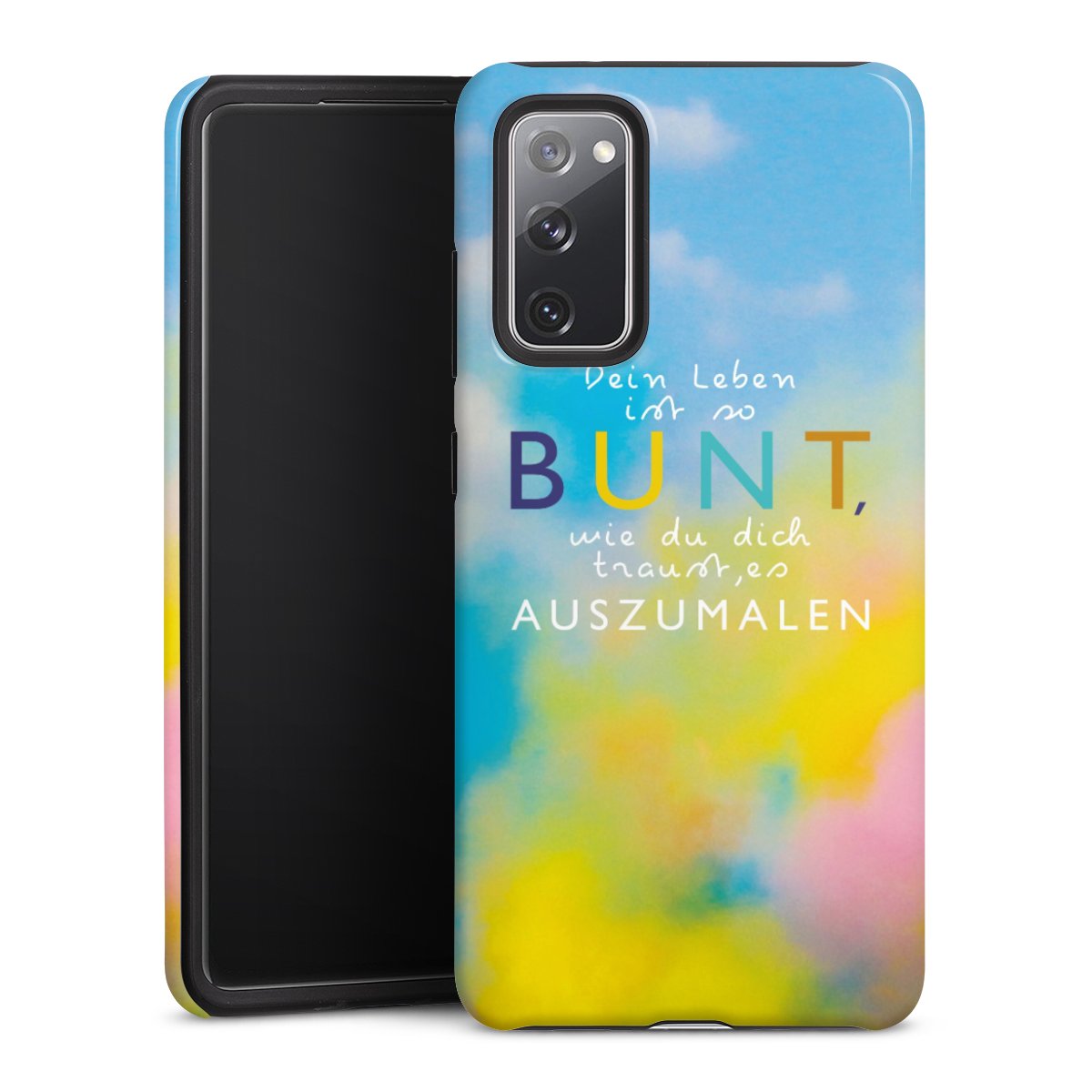 Bei dieser Handyhülle nutzen wird den besonders langlebigen Sublimationsdruck. Dieses raffinierte Druckverfahren sticht durch sein hochwertiges, gestochen scharfes Druckbild in brillanten Farben hervor. Der Druckbereich umfasst die ganze Hartschale inklusive der Ecken und Kanten, lediglich der Silikon-Einleger bleibt einfarbig schwarz. Wähle für Dein Design entweder eines unserer exklusiven Shop-Motive, oder werde kreativ und gestalte Dein Wunschdesign zum Beispiel mit Fotos und Overlays selbst.