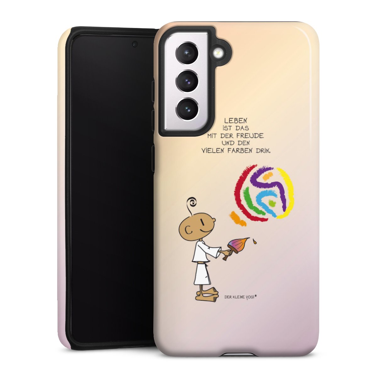 Bei dieser Handyhülle nutzen wird den besonders langlebigen Sublimationsdruck. Dieses raffinierte Druckverfahren sticht durch sein hochwertiges, gestochen scharfes Druckbild in brillanten Farben hervor. Der Druckbereich umfasst die ganze Hartschale inklusive der Ecken und Kanten, lediglich der Silikon-Einleger bleibt einfarbig schwarz. Wähle für Dein Design entweder eines unserer exklusiven Shop-Motive, oder werde kreativ und gestalte Dein Wunschdesign zum Beispiel mit Fotos und Overlays selbst.