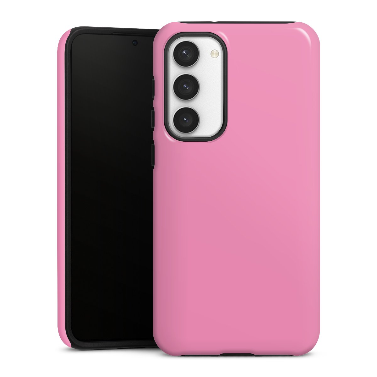 Unsere sicherste Schutzhülle vereint die Vorteile der Silikonhülle mit den Vorzügen des Premium Cases und besteht aus zwei Teilen: Innen federt der flexible Silikonkern aus robustem TPU (thermoplastisches Polyurethan) zuverlässig Stöße und Stürze ab, außen sorgt die widerstandsfähige und langlebige Hartschale aus Polycarbonat für zusätzliche Stabilität. Die Oberfläche der insgesamt 2,6 mm starken Hülle fühlt sich angenehm glatt an und macht das Tough Case zu einem echten Handschmeichler. Die Handyhülle ist in glänzend und matt erhältlich, der Silikoneinleger ist Schwarz.