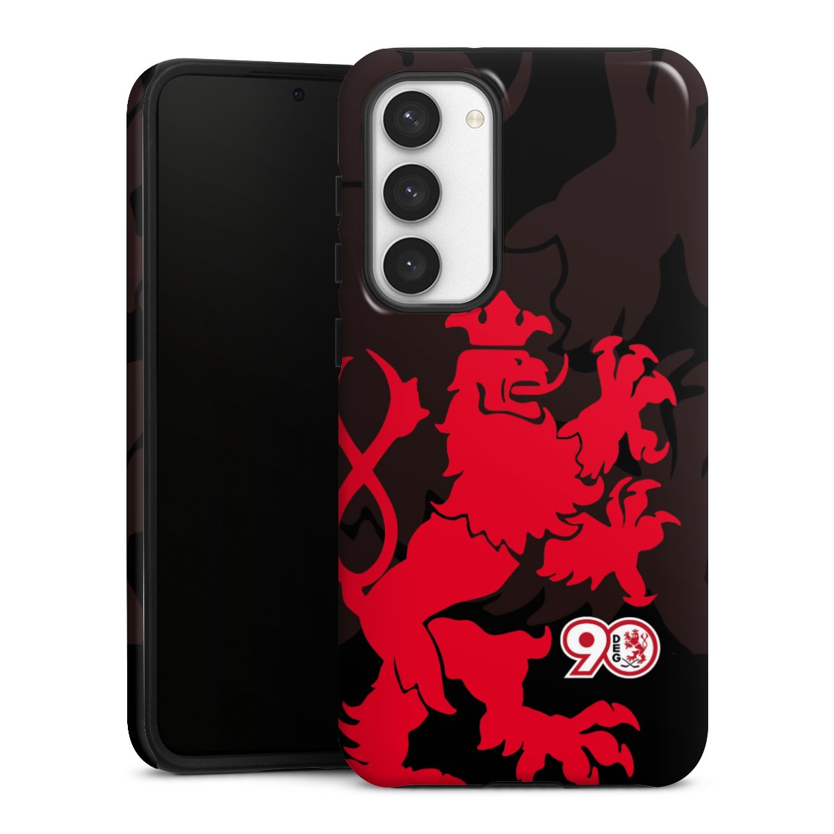 Bei dieser Handyhülle nutzen wird den besonders langlebigen Sublimationsdruck. Dieses raffinierte Druckverfahren sticht durch sein hochwertiges, gestochen scharfes Druckbild in brillanten Farben hervor. Der Druckbereich umfasst die ganze Hartschale inklusive der Ecken und Kanten, lediglich der Silikon-Einleger bleibt einfarbig schwarz. Wähle für Dein Design entweder eines unserer exklusiven Shop-Motive, oder werde kreativ und gestalte Dein Wunschdesign zum Beispiel mit Fotos und Overlays selbst.