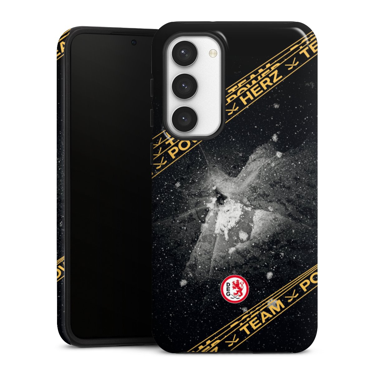 Unsere sicherste Schutzhülle vereint die Vorteile der Silikonhülle mit den Vorzügen des Premium Cases und besteht aus zwei Teilen: Innen federt der flexible Silikonkern aus robustem TPU (thermoplastisches Polyurethan) zuverlässig Stöße und Stürze ab, außen sorgt die widerstandsfähige und langlebige Hartschale aus Polycarbonat für zusätzliche Stabilität. Die Oberfläche der insgesamt 2,6 mm starken Hülle fühlt sich angenehm glatt an und macht das Tough Case zu einem echten Handschmeichler. Die Handyhülle ist in glänzend und matt erhältlich, der Silikoneinleger ist Schwarz.