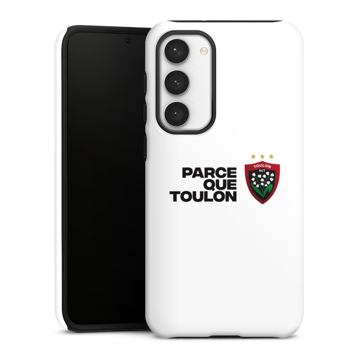 Unsere sicherste Schutzhülle vereint die Vorteile der Silikonhülle mit den Vorzügen des Premium Cases und besteht aus zwei Teilen: Innen federt der flexible Silikonkern aus robustem TPU (thermoplastisches Polyurethan) zuverlässig Stöße und Stürze ab, außen sorgt die widerstandsfähige und langlebige Hartschale aus Polycarbonat für zusätzliche Stabilität. Die Oberfläche der insgesamt 2,6 mm starken Hülle fühlt sich angenehm glatt an und macht das Tough Case zu einem echten Handschmeichler. Die Handyhülle ist in glänzend und matt erhältlich, der Silikoneinleger ist Schwarz.