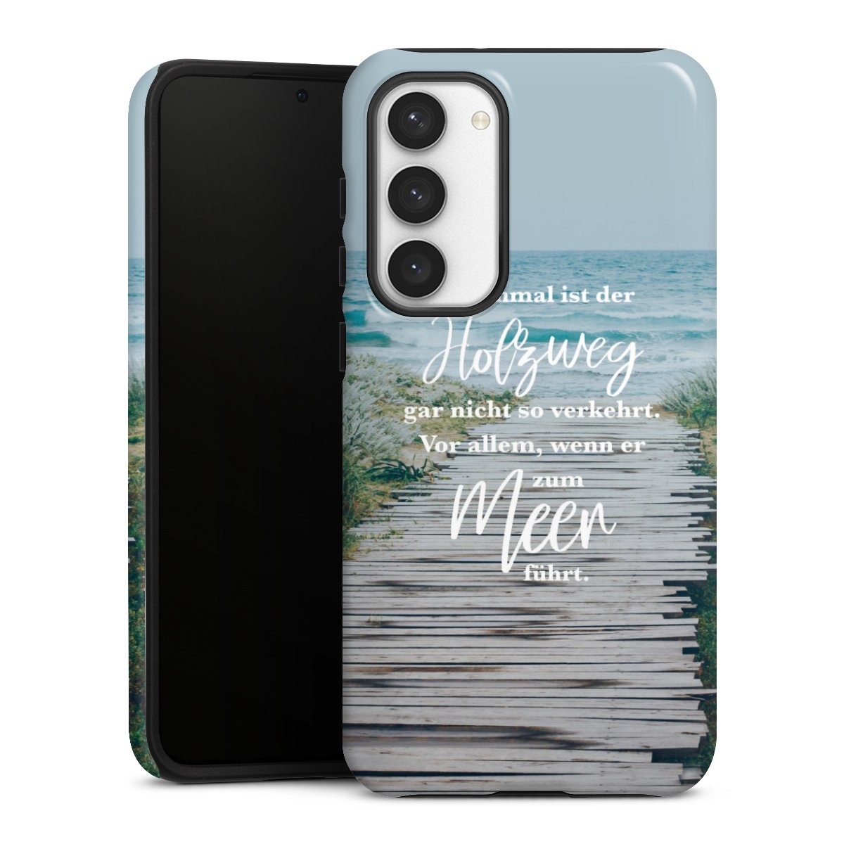 Bei dieser Handyhülle nutzen wird den besonders langlebigen Sublimationsdruck. Dieses raffinierte Druckverfahren sticht durch sein hochwertiges, gestochen scharfes Druckbild in brillanten Farben hervor. Der Druckbereich umfasst die ganze Hartschale inklusive der Ecken und Kanten, lediglich der Silikon-Einleger bleibt einfarbig schwarz. Wähle für Dein Design entweder eines unserer exklusiven Shop-Motive, oder werde kreativ und gestalte Dein Wunschdesign zum Beispiel mit Fotos und Overlays selbst.