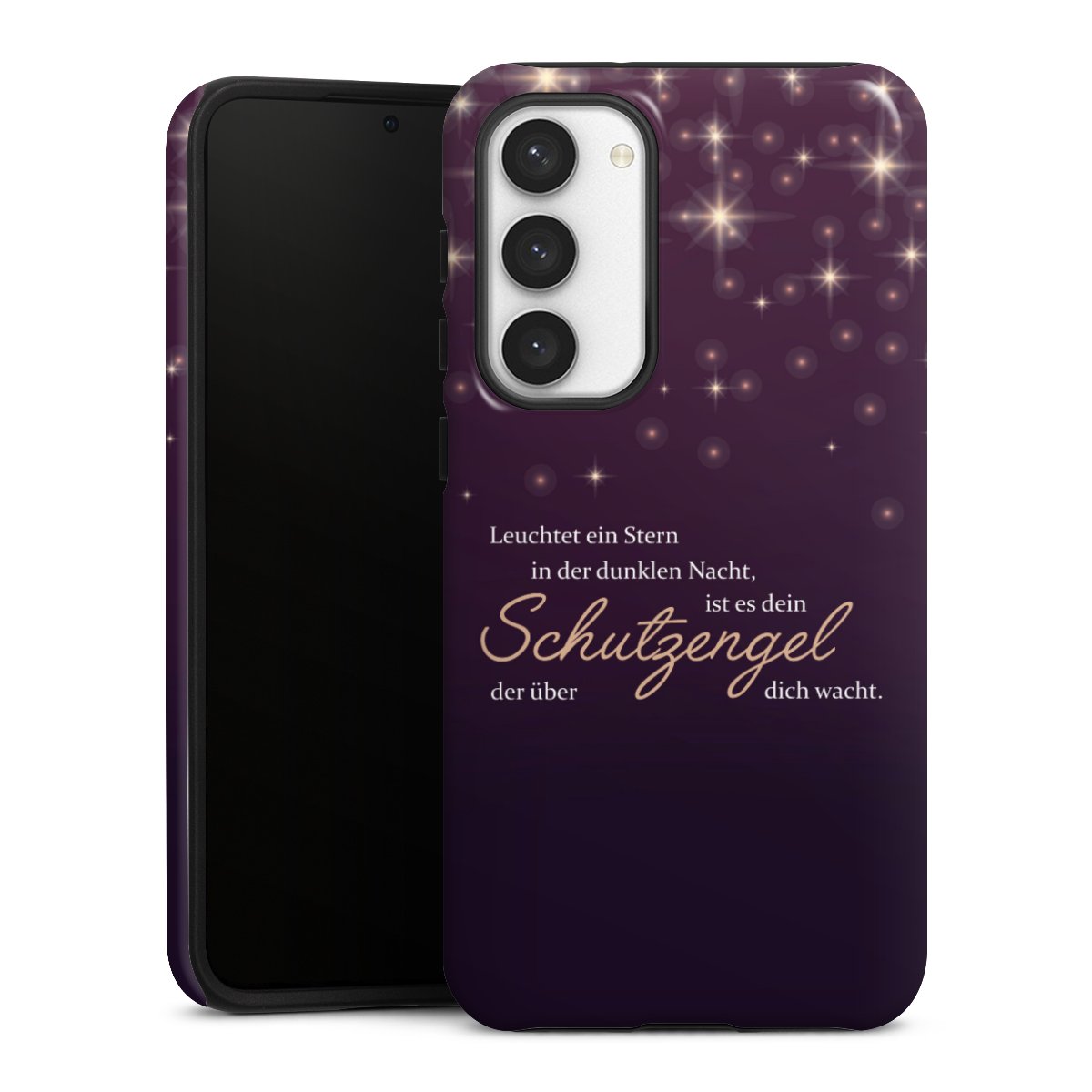 Bei dieser Handyhülle nutzen wird den besonders langlebigen Sublimationsdruck. Dieses raffinierte Druckverfahren sticht durch sein hochwertiges, gestochen scharfes Druckbild in brillanten Farben hervor. Der Druckbereich umfasst die ganze Hartschale inklusive der Ecken und Kanten, lediglich der Silikon-Einleger bleibt einfarbig schwarz. Wähle für Dein Design entweder eines unserer exklusiven Shop-Motive, oder werde kreativ und gestalte Dein Wunschdesign zum Beispiel mit Fotos und Overlays selbst.