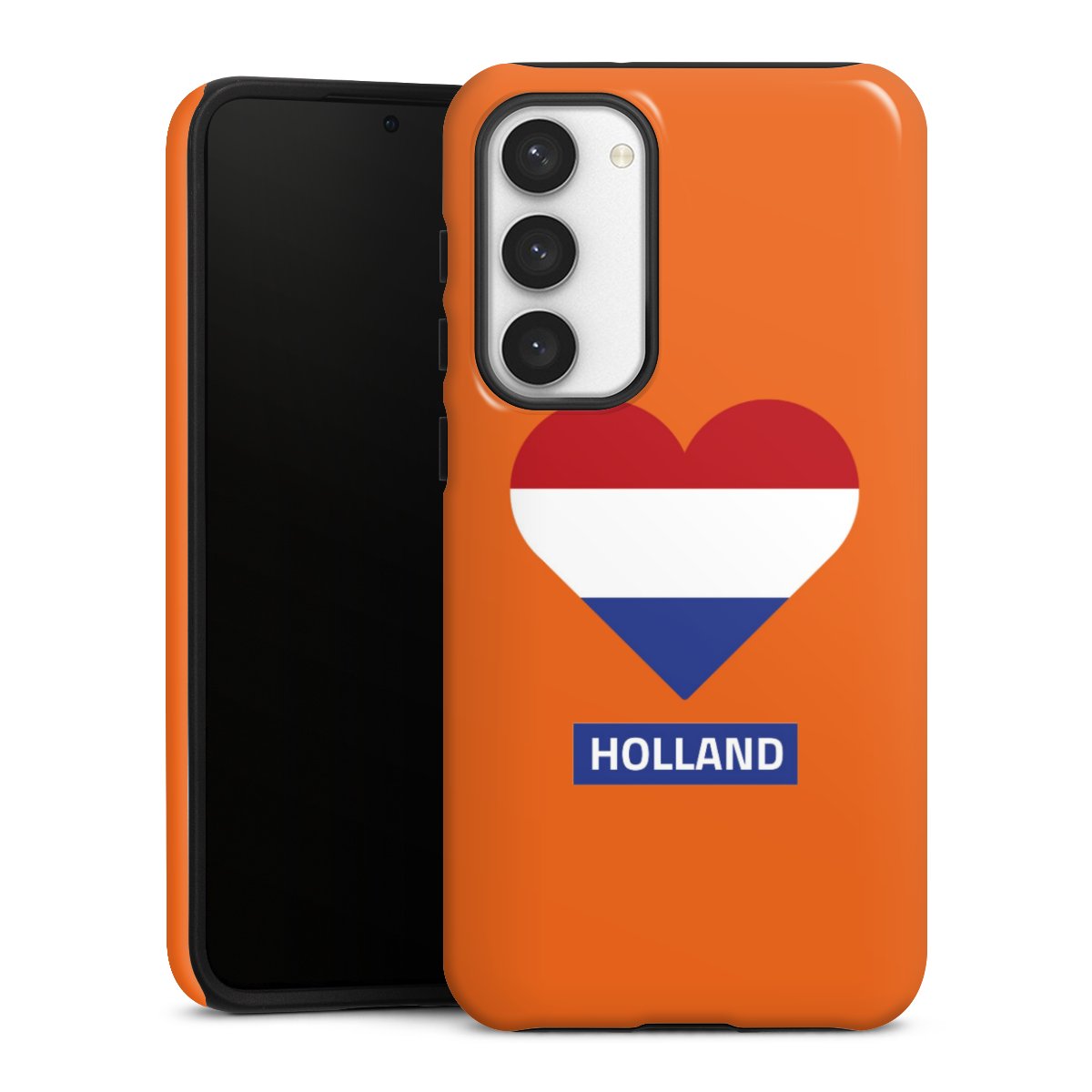 Bei dieser Handyhülle nutzen wird den besonders langlebigen Sublimationsdruck. Dieses raffinierte Druckverfahren sticht durch sein hochwertiges, gestochen scharfes Druckbild in brillanten Farben hervor. Der Druckbereich umfasst die ganze Hartschale inklusive der Ecken und Kanten, lediglich der Silikon-Einleger bleibt einfarbig schwarz. Wähle für Dein Design entweder eines unserer exklusiven Shop-Motive, oder werde kreativ und gestalte Dein Wunschdesign zum Beispiel mit Fotos und Overlays selbst.