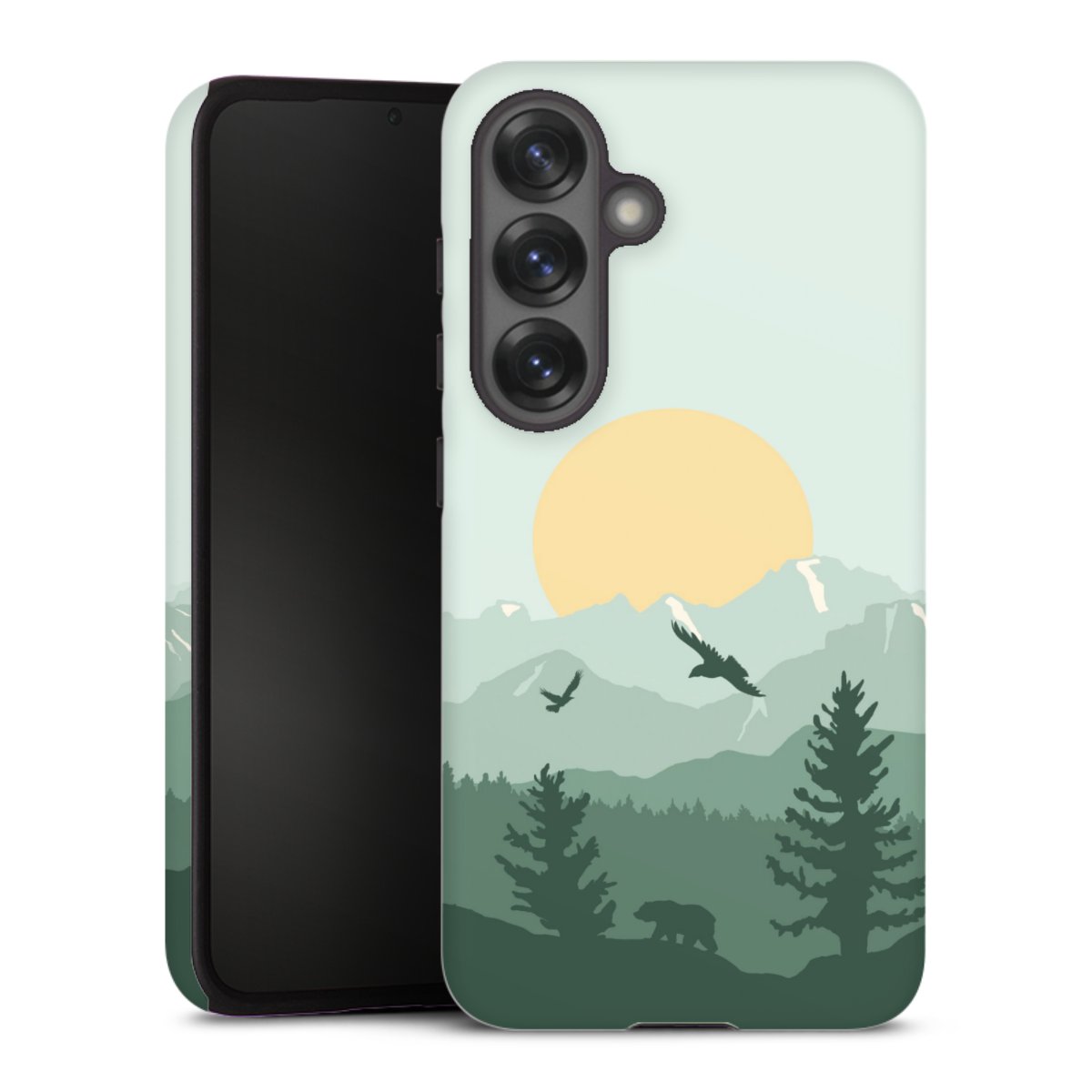 Bei dieser Handyhülle nutzen wird den besonders langlebigen Sublimationsdruck. Dieses raffinierte Druckverfahren sticht durch sein hochwertiges, gestochen scharfes Druckbild in brillanten Farben hervor. Der Druckbereich umfasst die ganze Hartschale inklusive der Ecken und Kanten, lediglich der Silikon-Einleger bleibt einfarbig schwarz. Wähle für Dein Design entweder eines unserer exklusiven Shop-Motive, oder werde kreativ und gestalte Dein Wunschdesign zum Beispiel mit Fotos und Overlays selbst.