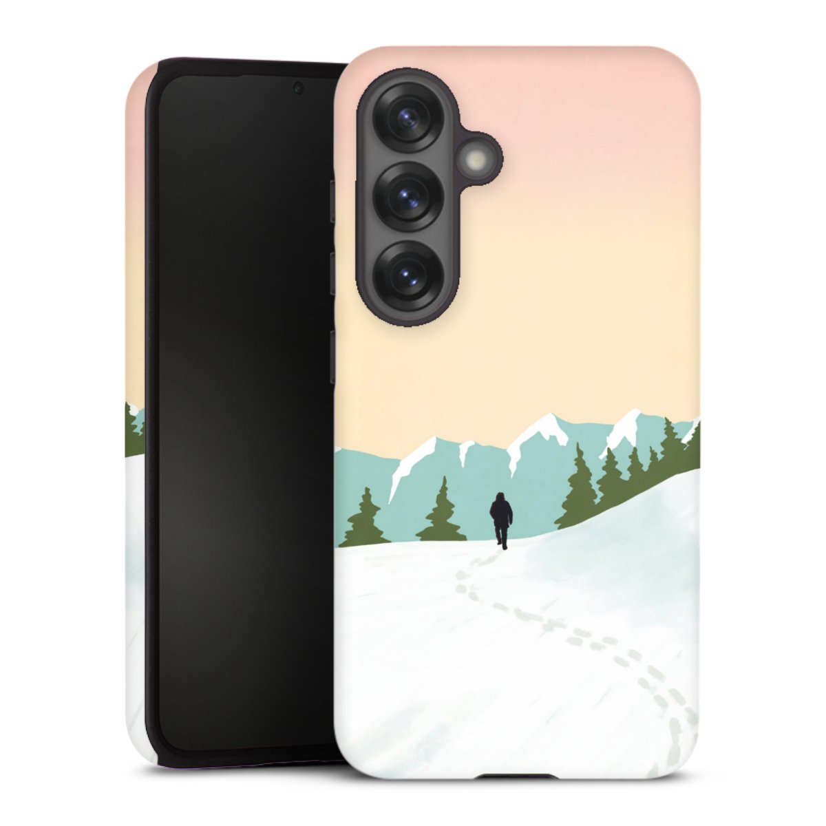 Bei dieser Handyhülle nutzen wird den besonders langlebigen Sublimationsdruck. Dieses raffinierte Druckverfahren sticht durch sein hochwertiges, gestochen scharfes Druckbild in brillanten Farben hervor. Der Druckbereich umfasst die ganze Hartschale inklusive der Ecken und Kanten, lediglich der Silikon-Einleger bleibt einfarbig schwarz. Wähle für Dein Design entweder eines unserer exklusiven Shop-Motive, oder werde kreativ und gestalte Dein Wunschdesign zum Beispiel mit Fotos und Overlays selbst.