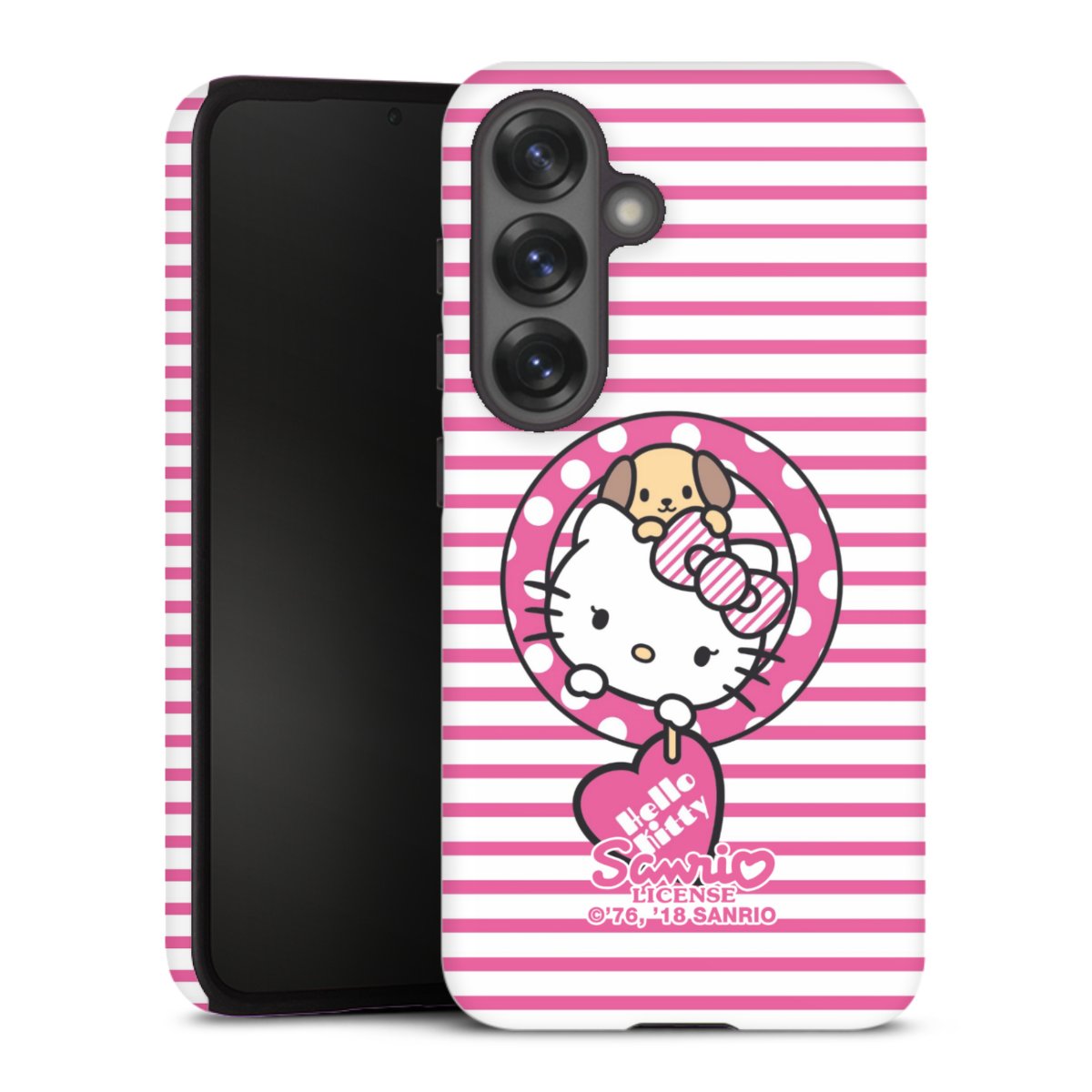 Bei dieser Handyhülle nutzen wird den besonders langlebigen Sublimationsdruck. Dieses raffinierte Druckverfahren sticht durch sein hochwertiges, gestochen scharfes Druckbild in brillanten Farben hervor. Der Druckbereich umfasst die ganze Hartschale inklusive der Ecken und Kanten, lediglich der Silikon-Einleger bleibt einfarbig schwarz. Wähle für Dein Design entweder eines unserer exklusiven Shop-Motive, oder werde kreativ und gestalte Dein Wunschdesign zum Beispiel mit Fotos und Overlays selbst.