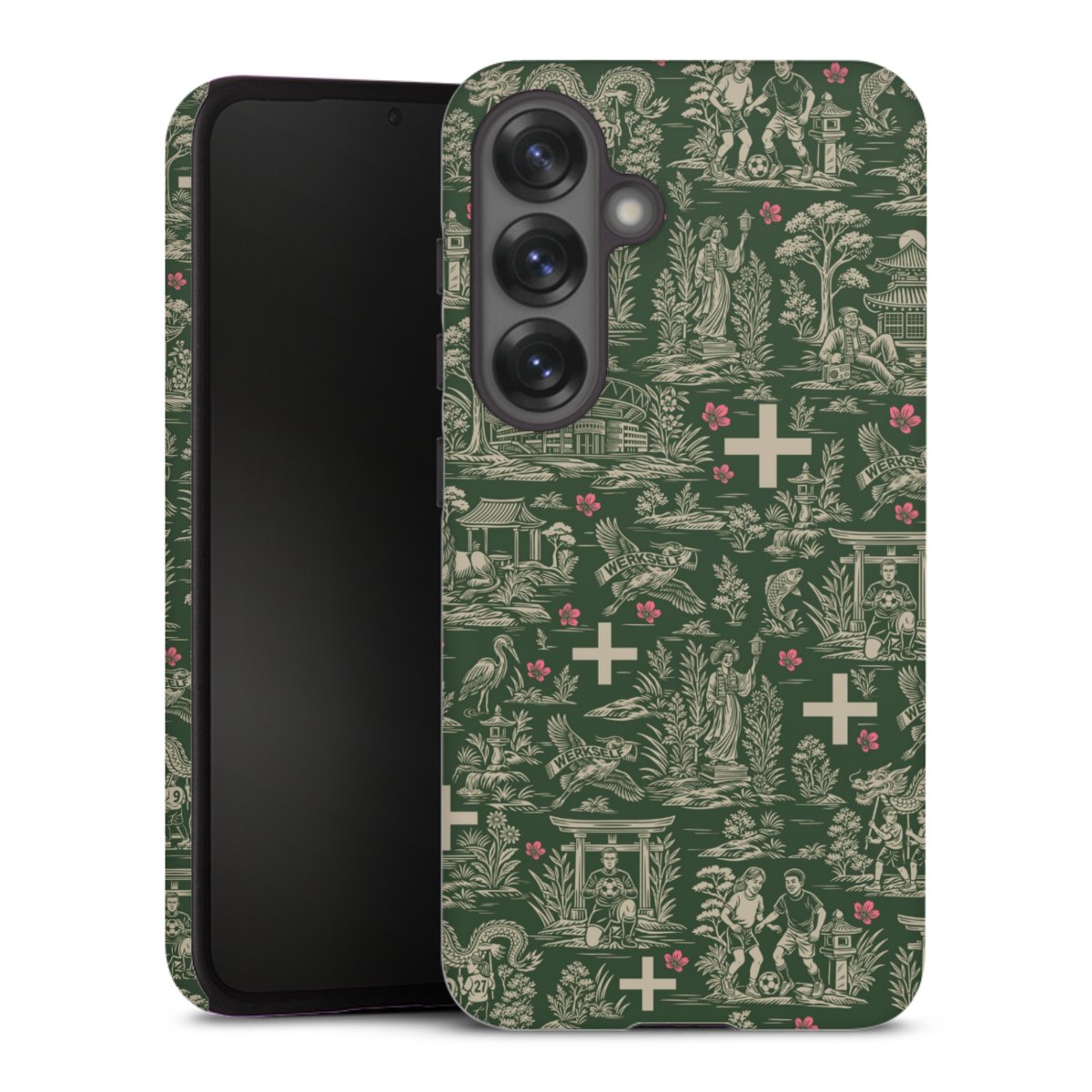 Bei dieser Handyhülle nutzen wird den besonders langlebigen Sublimationsdruck. Dieses raffinierte Druckverfahren sticht durch sein hochwertiges, gestochen scharfes Druckbild in brillanten Farben hervor. Der Druckbereich umfasst die ganze Hartschale inklusive der Ecken und Kanten, lediglich der Silikon-Einleger bleibt einfarbig schwarz. Wähle für Dein Design entweder eines unserer exklusiven Shop-Motive, oder werde kreativ und gestalte Dein Wunschdesign zum Beispiel mit Fotos und Overlays selbst.